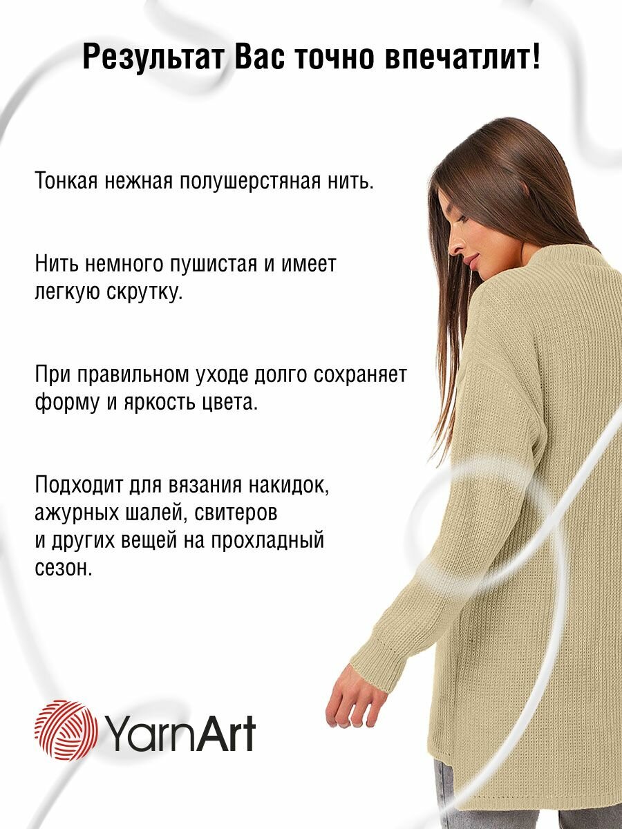 Пряжа для вязания YarnArt 'Angora Star' 100г, 500м (20% тонкая шерсть, 80% акрил) (7003 кремовый), 5 мотков