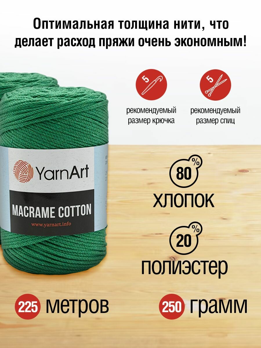 Пряжа для вязания YarnArt 'Macrame Cotton' 250г, 225м (80% хлопок, 20% полиэстер) (759 изумрудный), 4 мотка информация:
