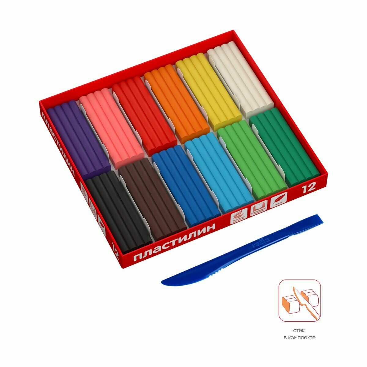 Пластилин 12 цветов Гамма, 240г, со стеком, картон. упаковка (2001241_12) информация: