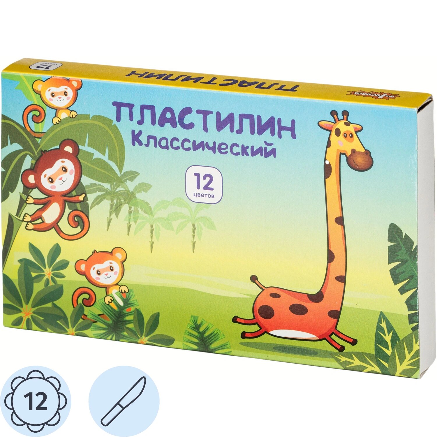Пластилин классический №1 School Джунгли 12 цв.180 гр, со стеком информация: