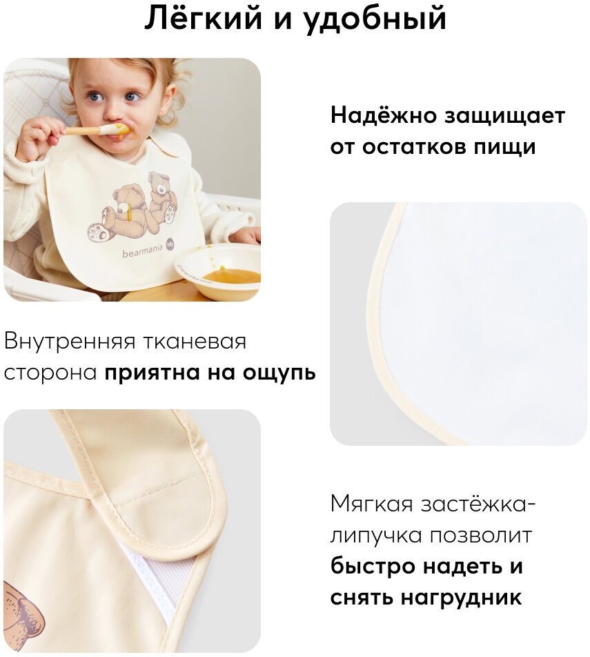 Отзывы на 16009, Нагрудник для кормления Happy Baby Waterproof Baby Bib X1, слюнявчик, водонепроницаемый, коричневый с мишками