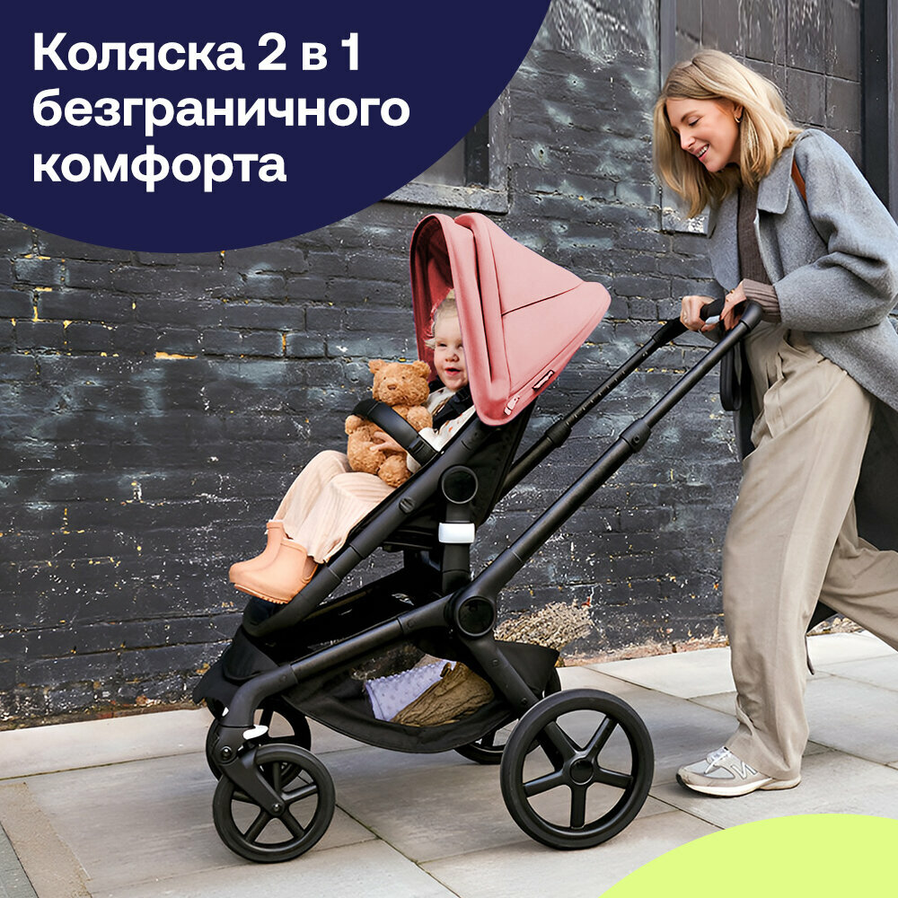 Коляска 2 в 1 Bugaboo Fox 5 Black/ Midnight Black/ Morning Pink в комплекте