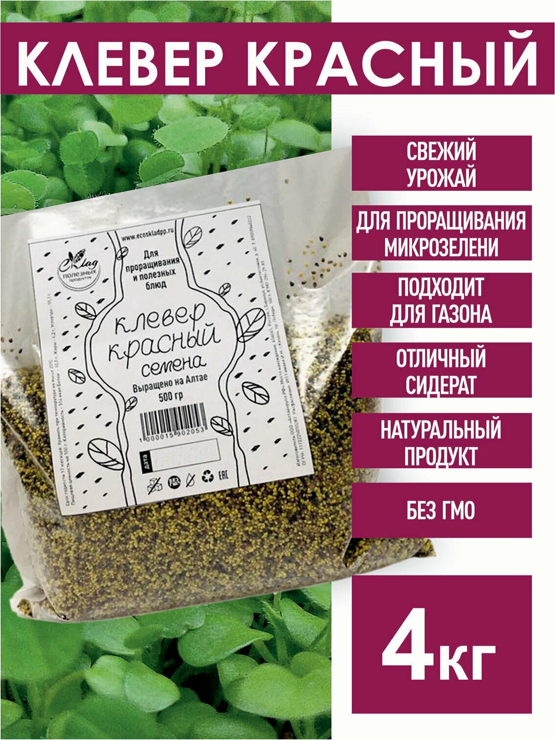 Клевер Красный семена для проращивания, 4 кг. информация:
