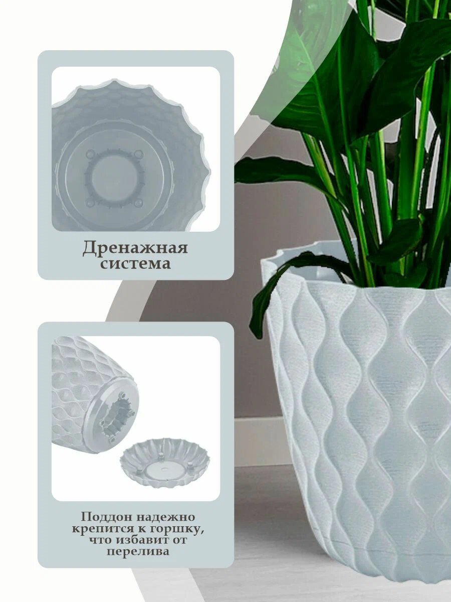 Горшок для цветов пластиковый 2,5л d-17,5см «Wave» с дренажной сеткой и съемным поддоном, французский платан 579 ₽