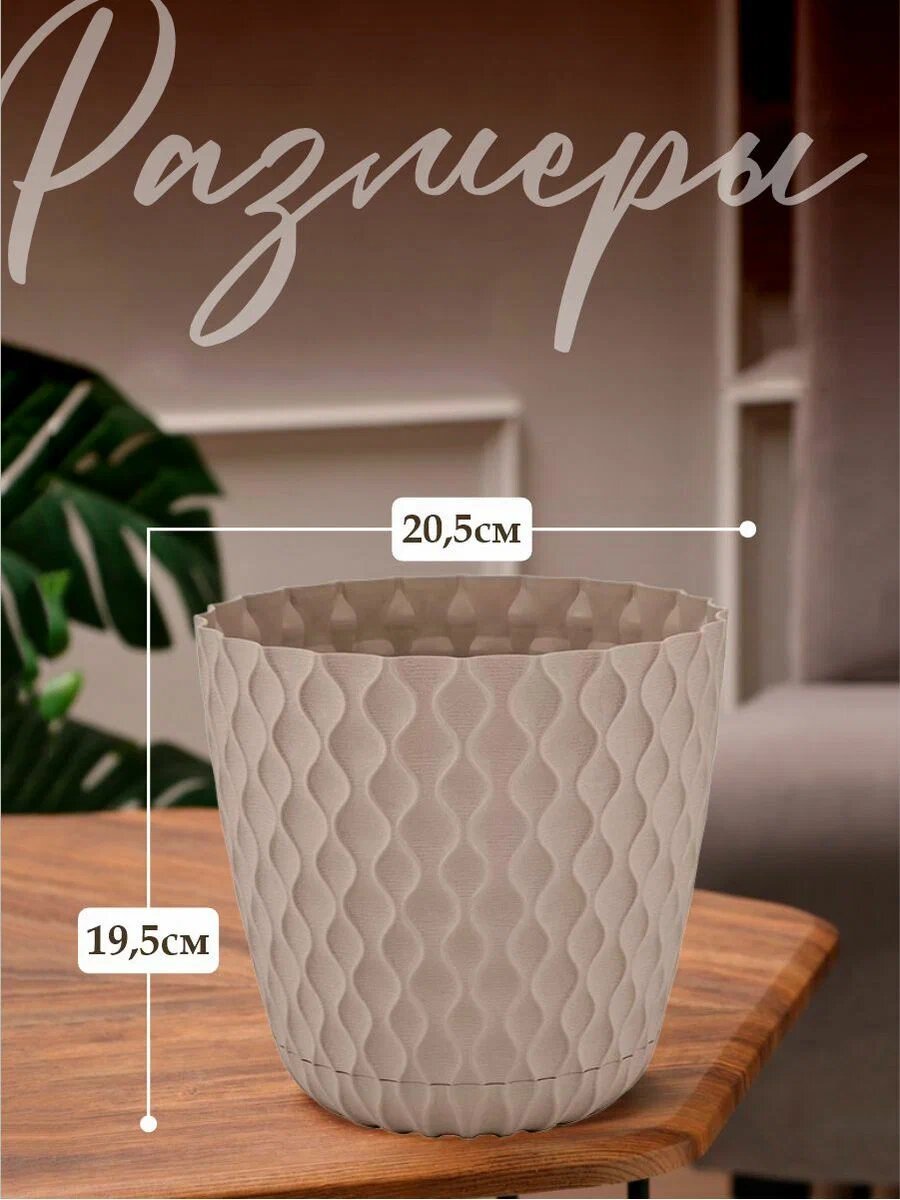 Горшок для цветов пластиковый 2,5л d-17,5см «Wave» с дренажной сеткой и съемным поддоном, французский платан 579 ₽