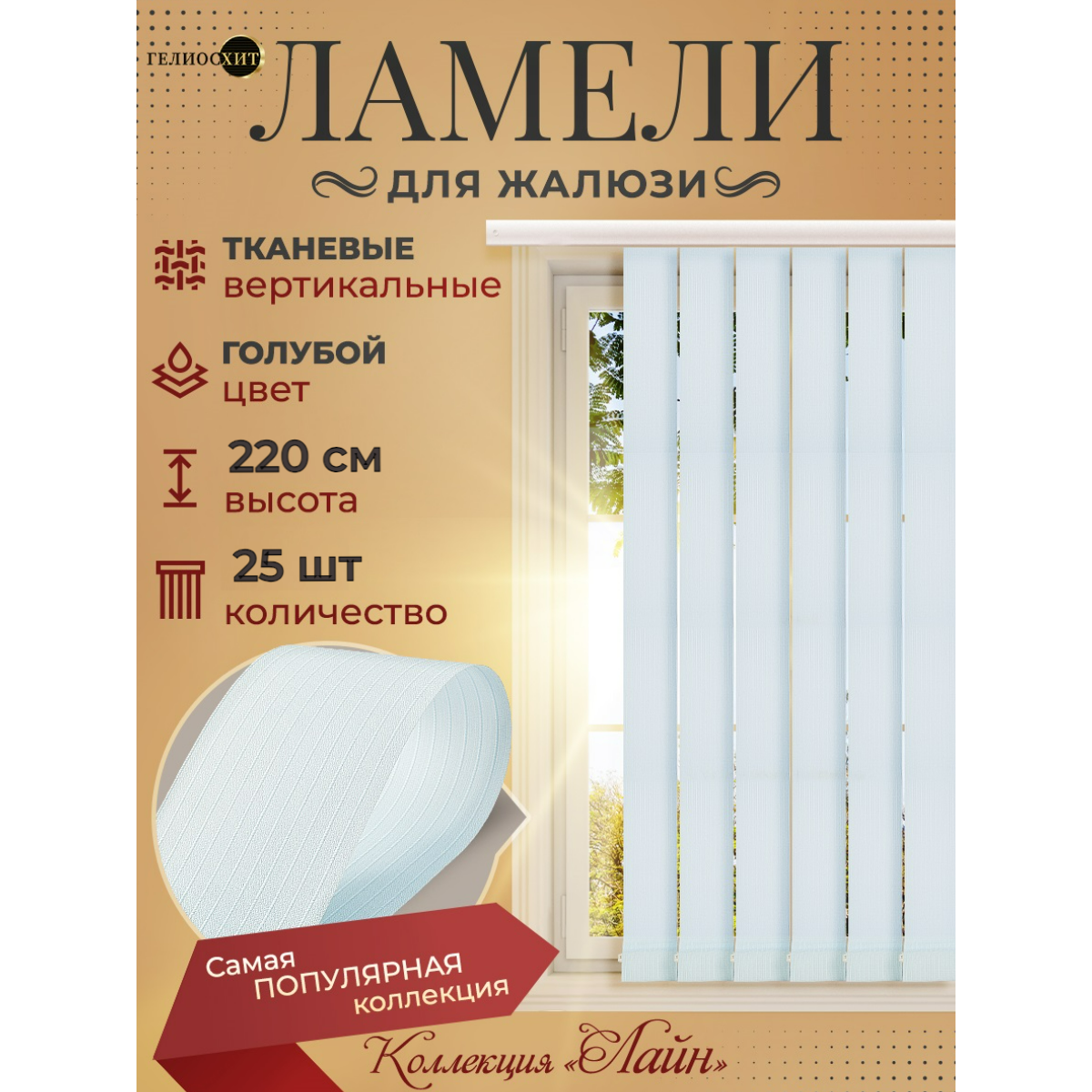 Ламели для вертикальных жалюзи 25 шт высотой 220 см голубого цвета (карниз приобретается отдельно), гелиосхит. информация:
