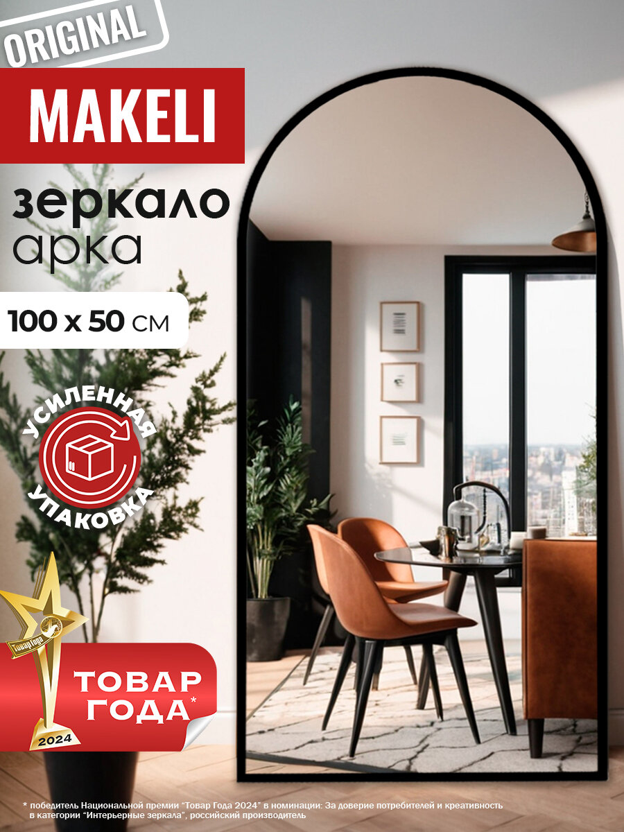 10 цен на Зеркало интерьерное арка с черной окантовкой 100х50 см