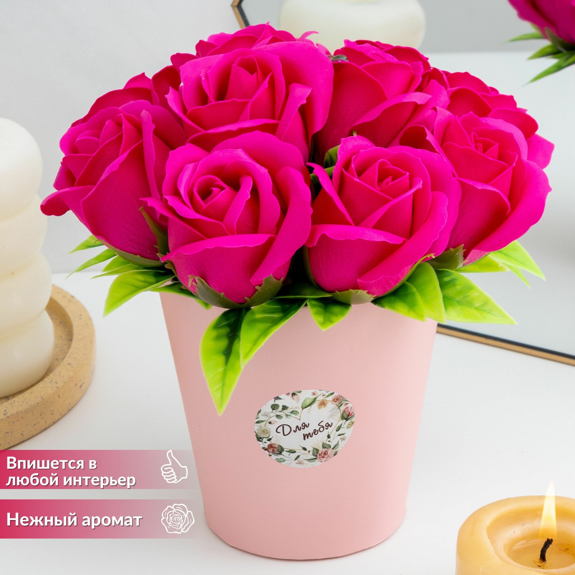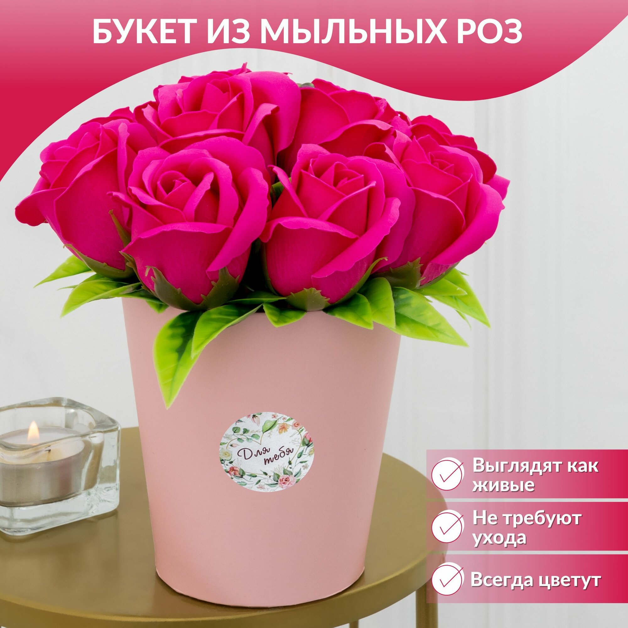 10 цен на Букет из мыльных роз "Розовый букет"