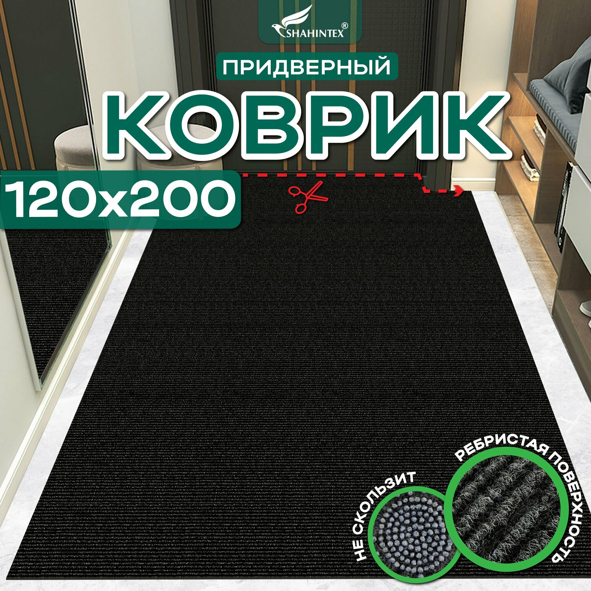 10 цен на Коврик придверный вырезной SHAHINTEX ПРАКТИК Ребристый/ размер 120х200 см/ чёрный гранит, ковер для ванной, коврик для кухни, прикроватный