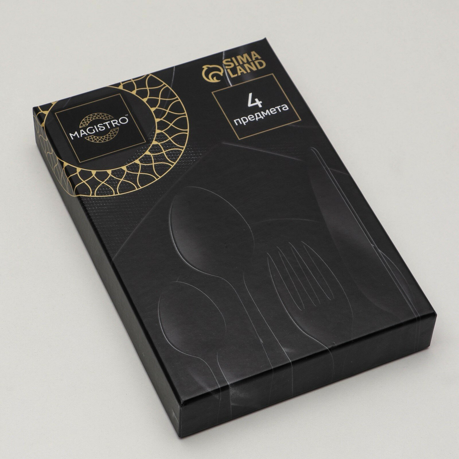 Набор столовых приборов из нержавеющей стали Magistro «Фолк», 4 предмета, цвет чёрный (арт. 3899296)