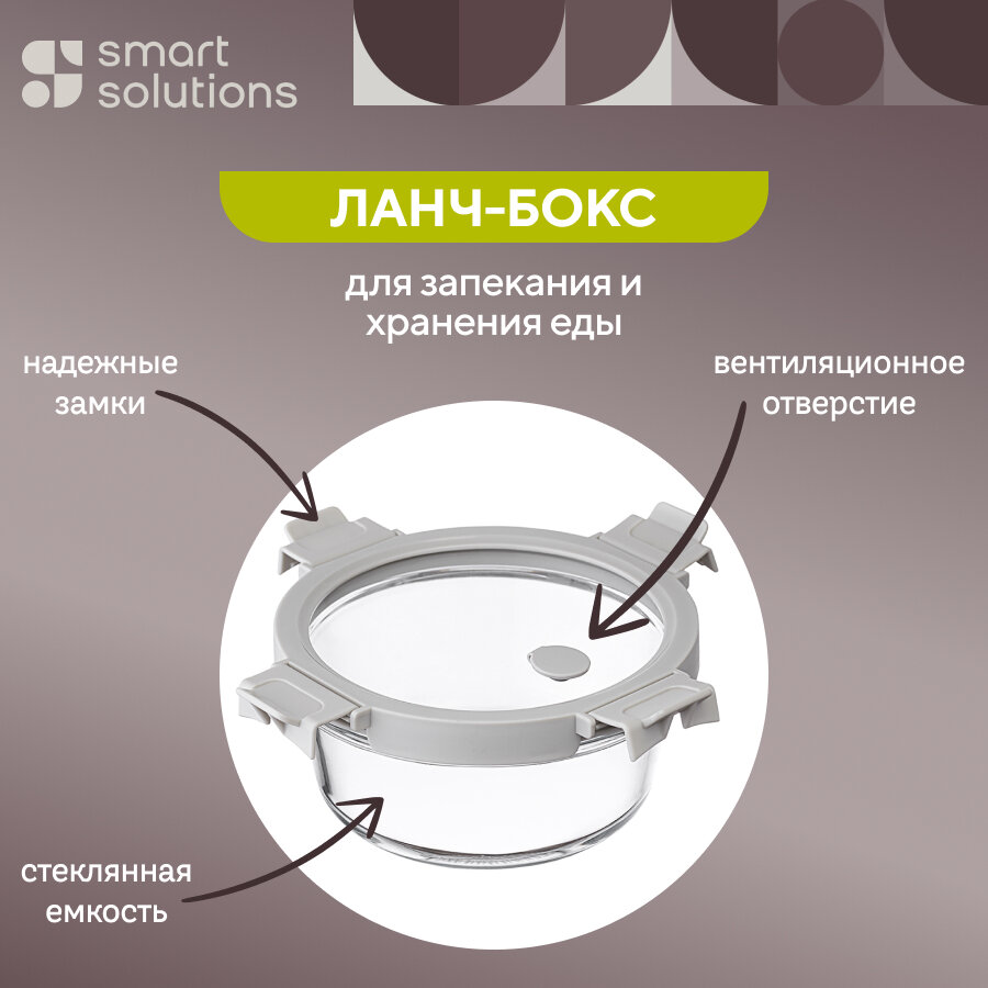 Контейнер для хранения и запекания продуктов круглый с крышкой 650 мл светло-серый Smart Solutions SS0000237 информация: