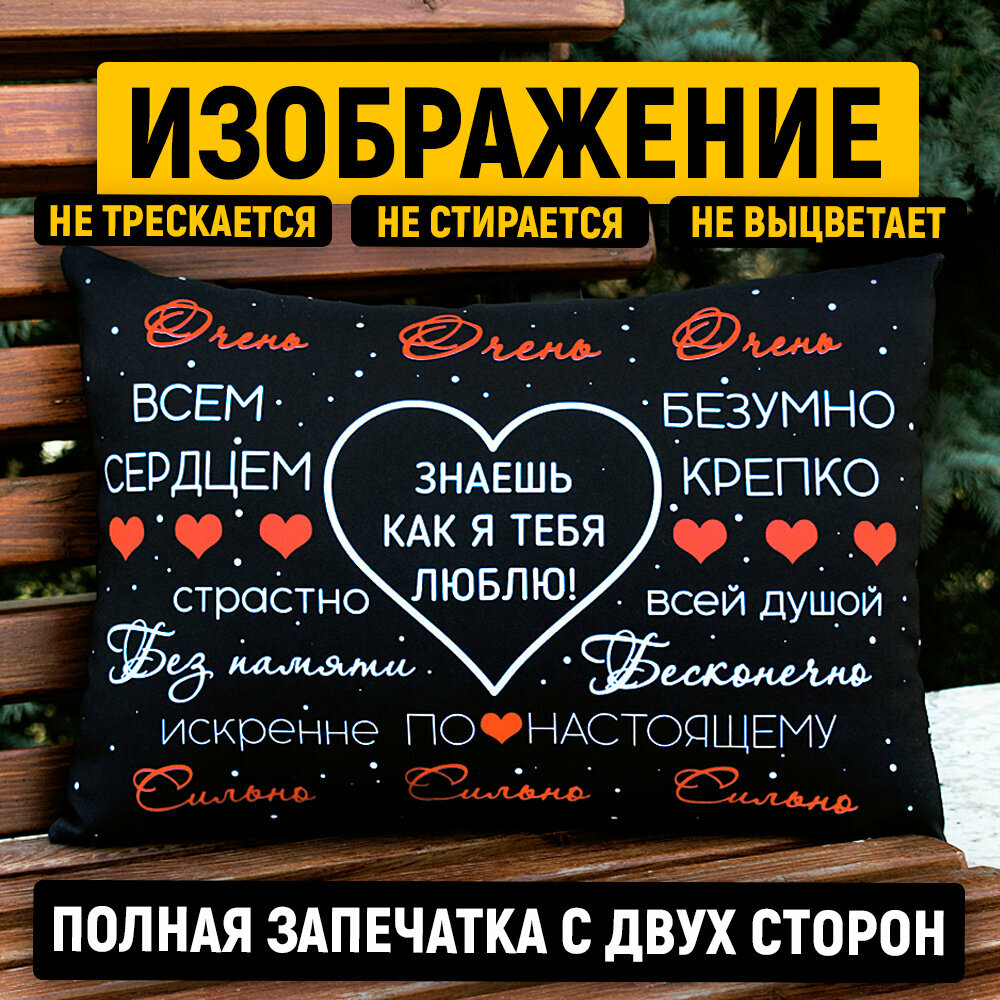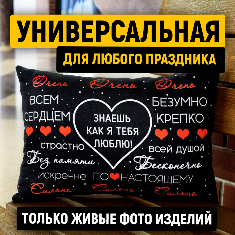 10 цен на Подушка подарочная декоративная с принтом и надписью любимому мужу, парню или девушке, жене на день рождения. Подарок на день рождения, Новый год. Знаешь, как я тебя люблю.