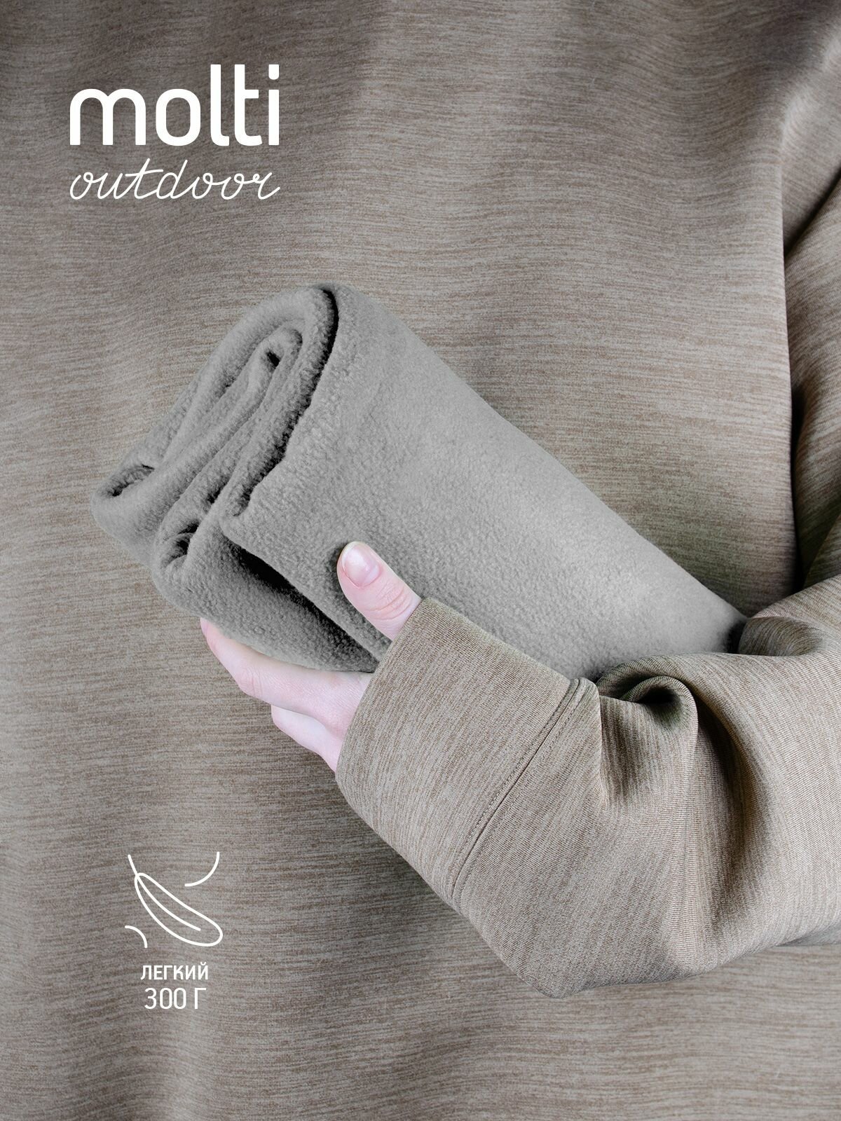 Плед флисовый molti Warm&Peace пляжное покрывало, коврик для пикника, 100х140 см, бежевый