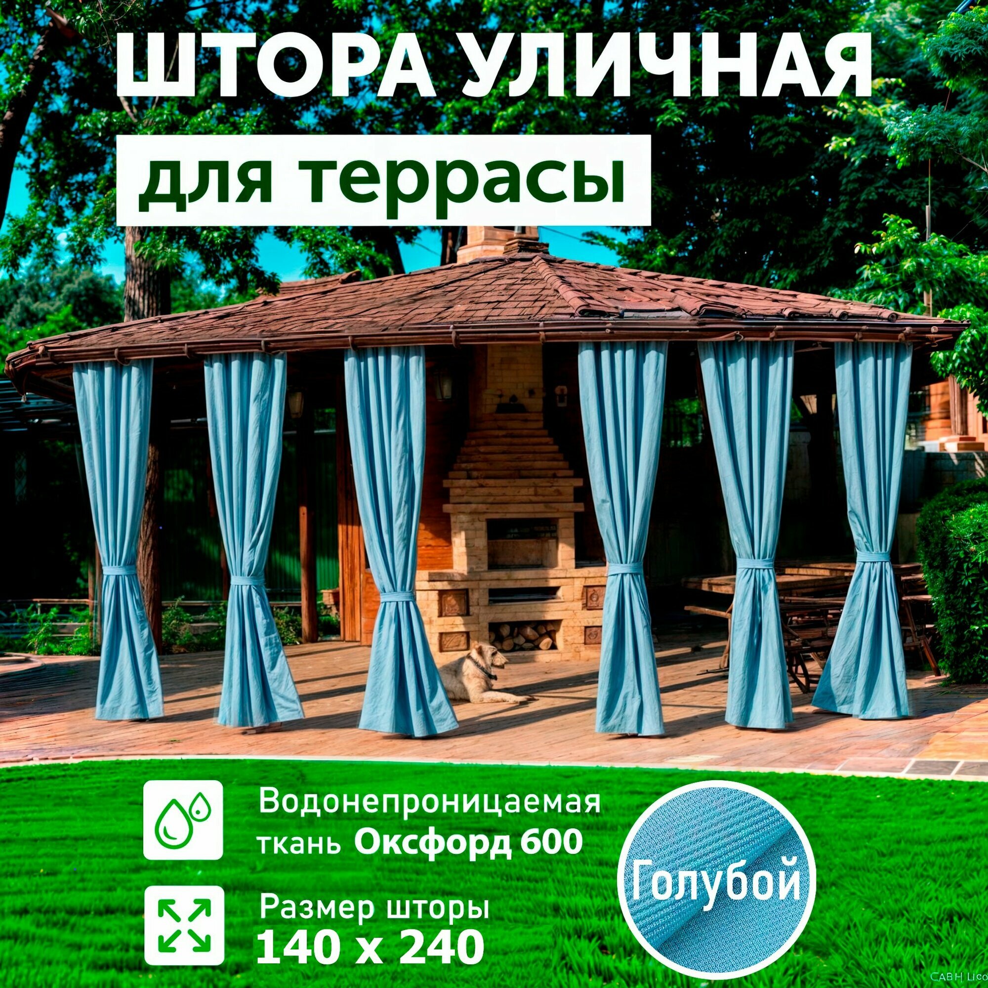 Штора уличная 240х145 см из оксфорда 600 D на петлях с липучками для беседки, террасы, веранды, летнего кафе, цвет голубой информация:
