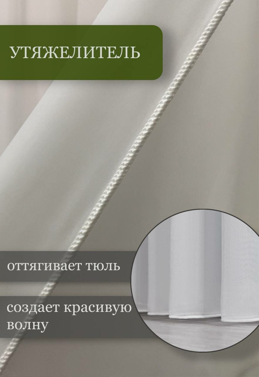 | Комплектация | шторная лента шириной 6 см пришита к верху тюля |