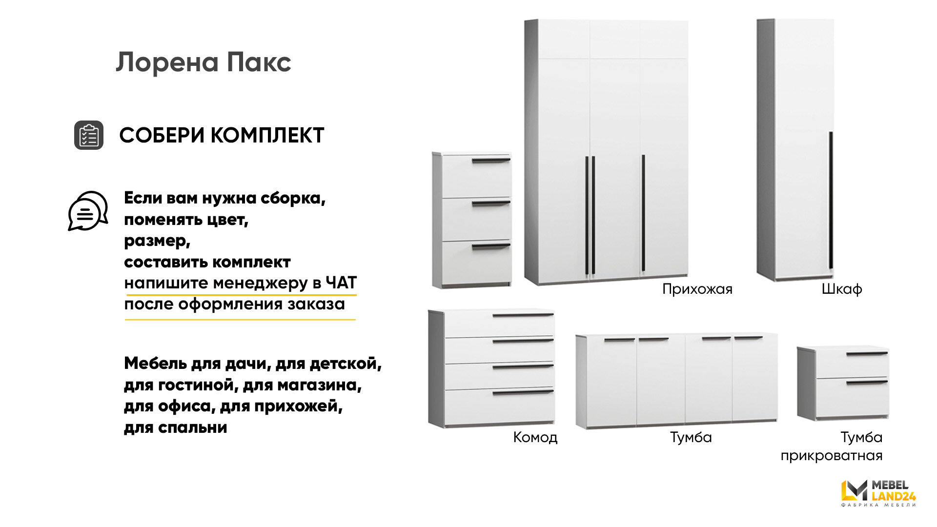 Прихожая МебельЛэнд24 Лорена Пакс - 5 Белый 175x34x200 с зеркалом 38 390 ₽