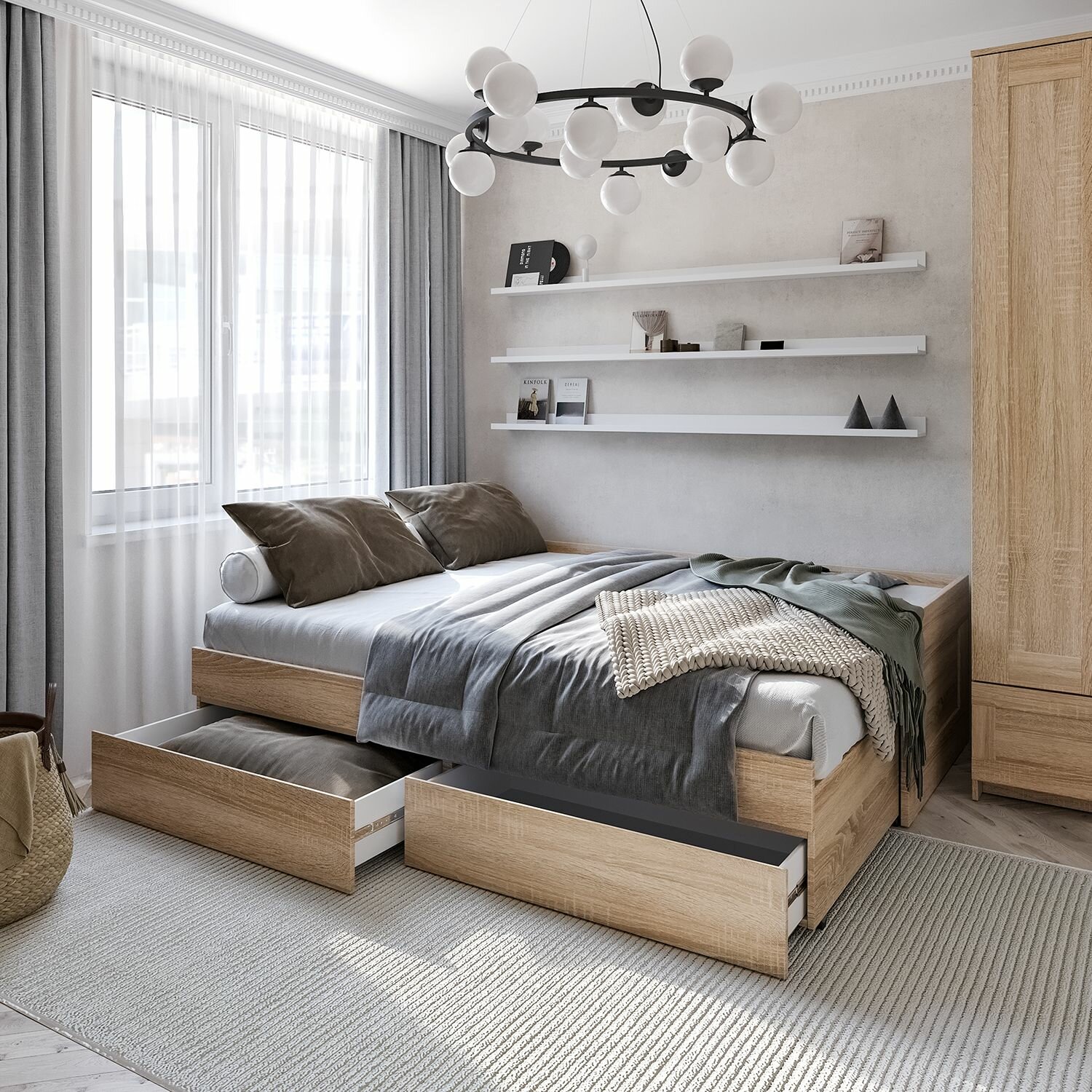 Кровать раздвижная ГУД ЛАКК Сириус, с ящиками, 90х200/180х200 см, дуб сонома 29 999 ₽