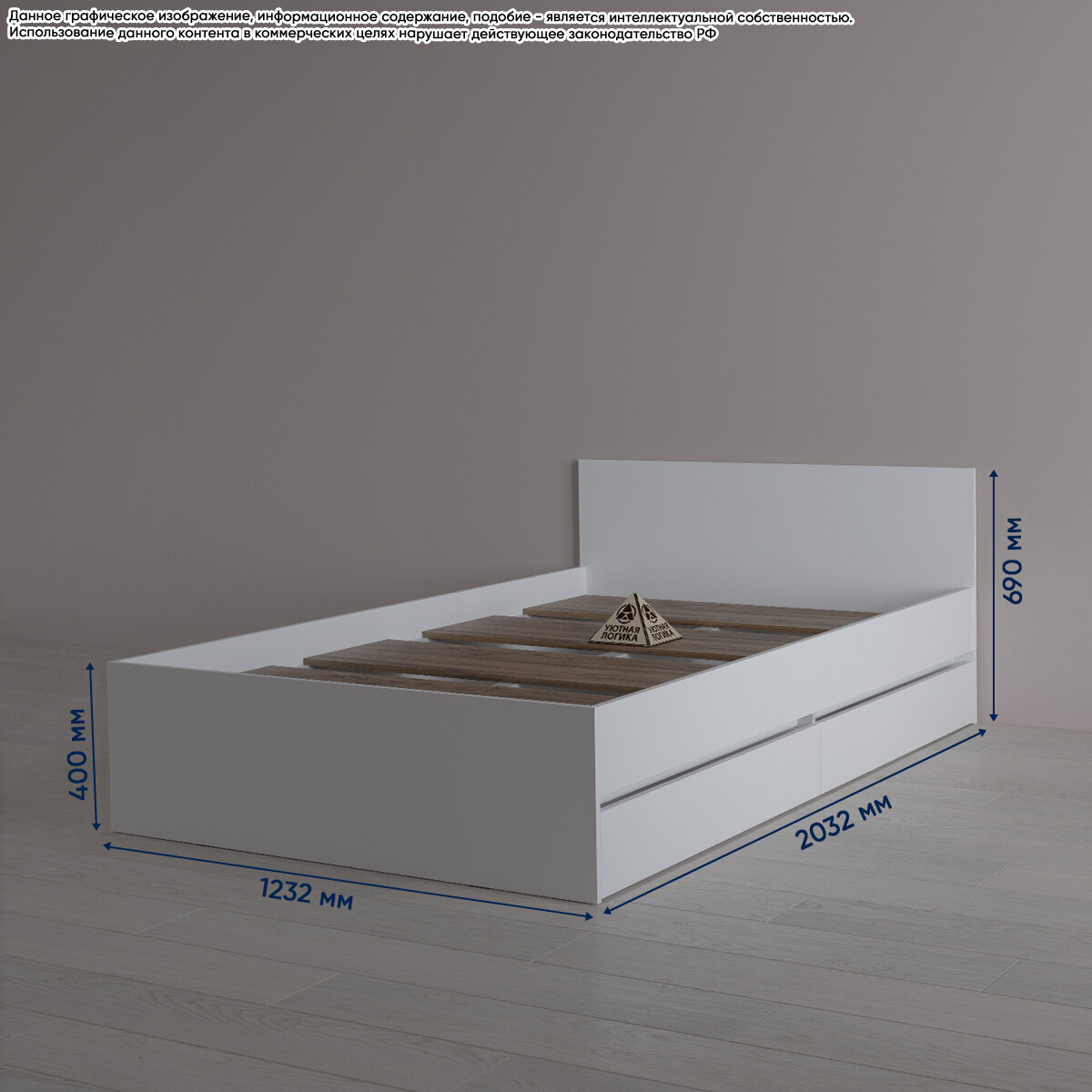 Кровать Квазар КР2Я-156, с ящиками, ЛДСП, 123x203х69 см, белая информация: