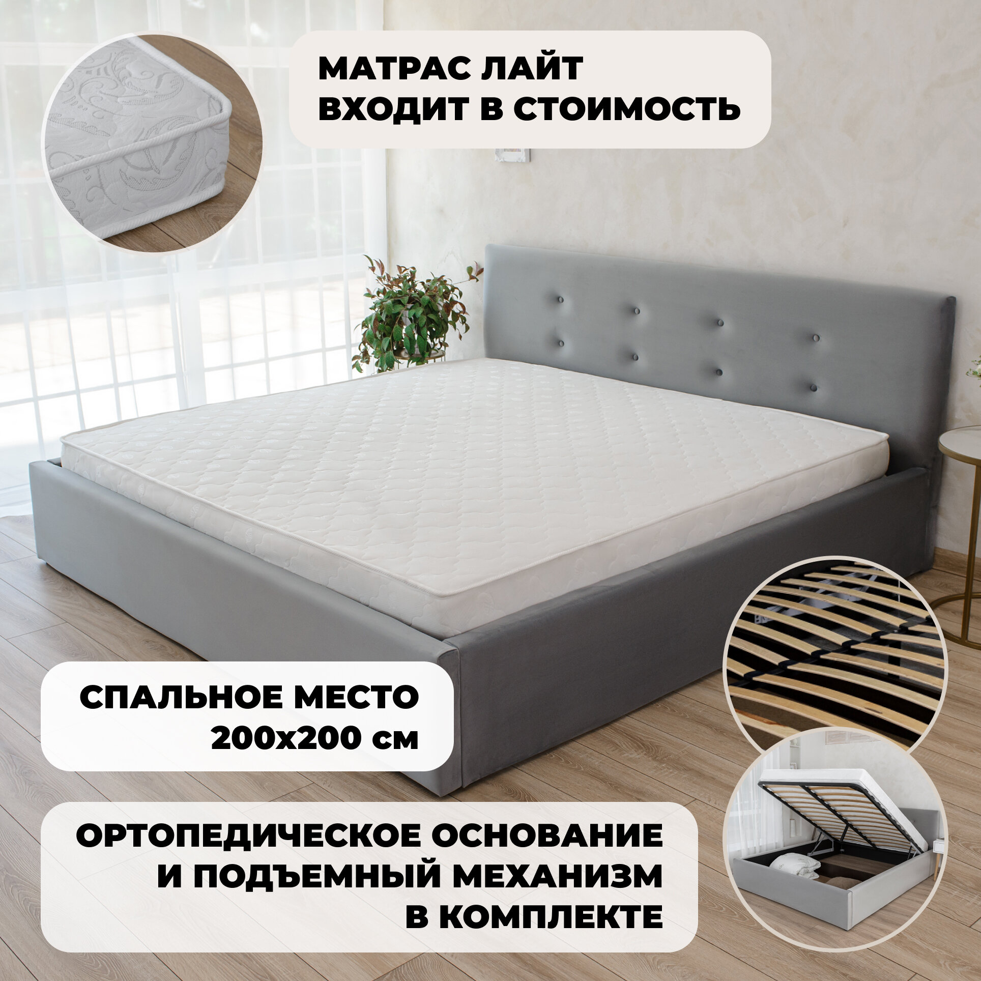 Кровать Роза Серая с матрасом Лайт и ПМ, 200х200 см информация: