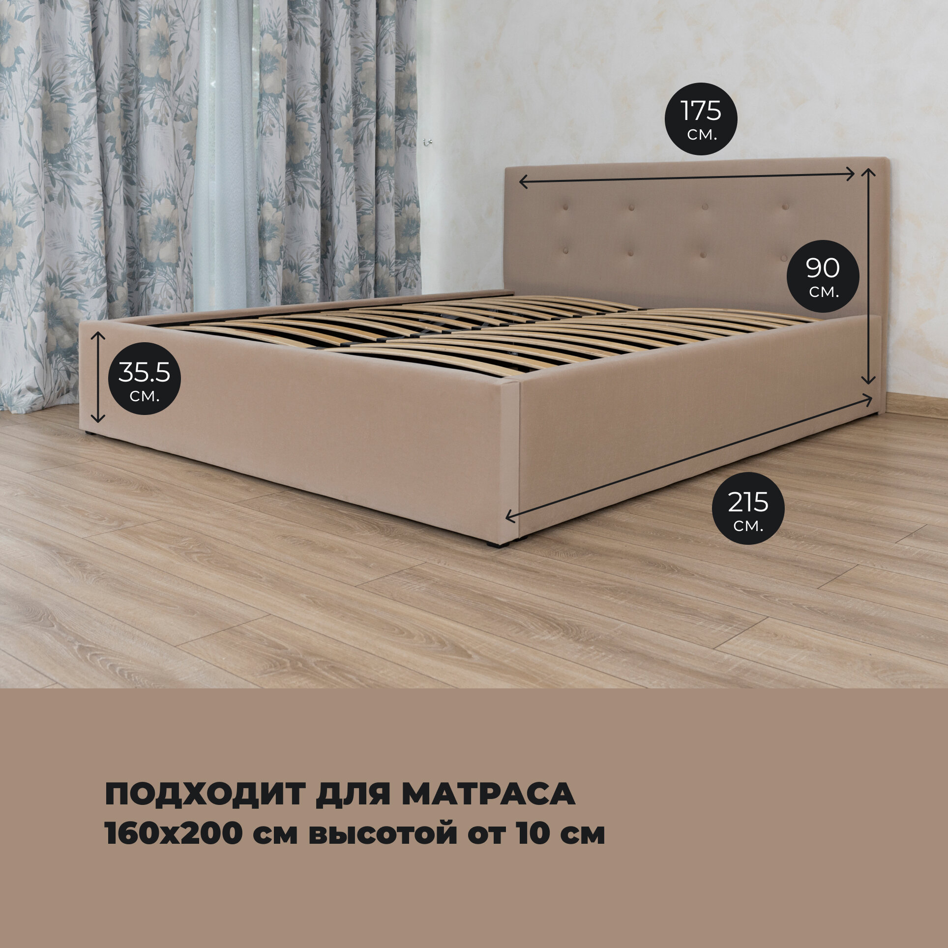 | Особенности | мягкое изголовье, с подъемным механизмом |
