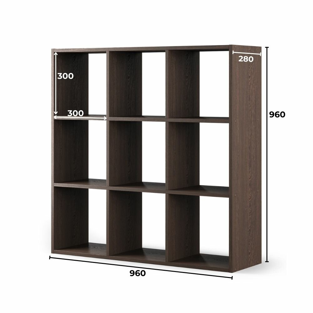 Стеллаж Kvadro-9 венге деревянный напольный для книг, игрушек 960х960х280 информация: