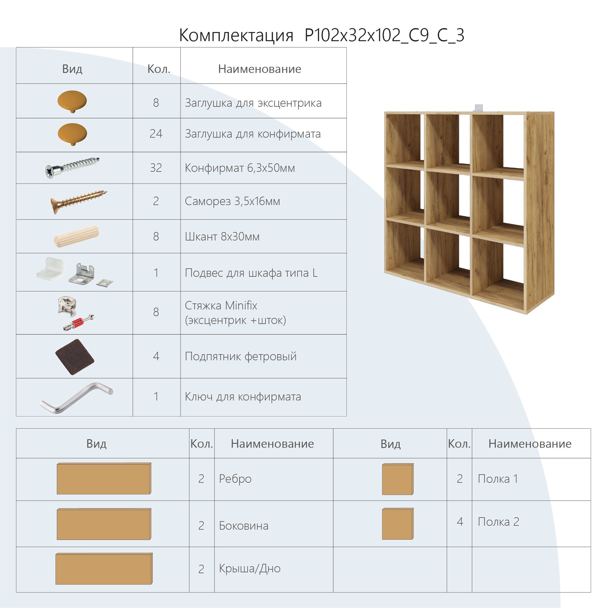 | Комплектация | в комплектацию входит: детали, комплект фурнитуры и инструкция по сборке. |