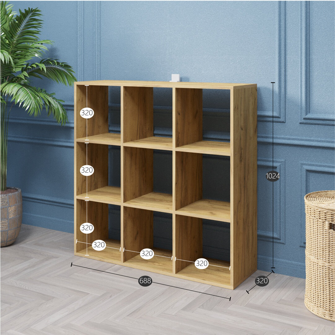Стеллаж модульный Velardy Cubicus, 102x32x102см, белый+дуб крафт золотой информация: