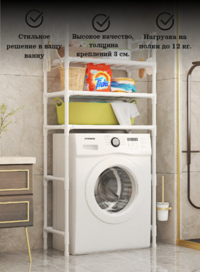 Отзывы на Стеллаж , металл/пластик, белый, для стиральной машины, 64х26х175 см Вместительный трехярусный