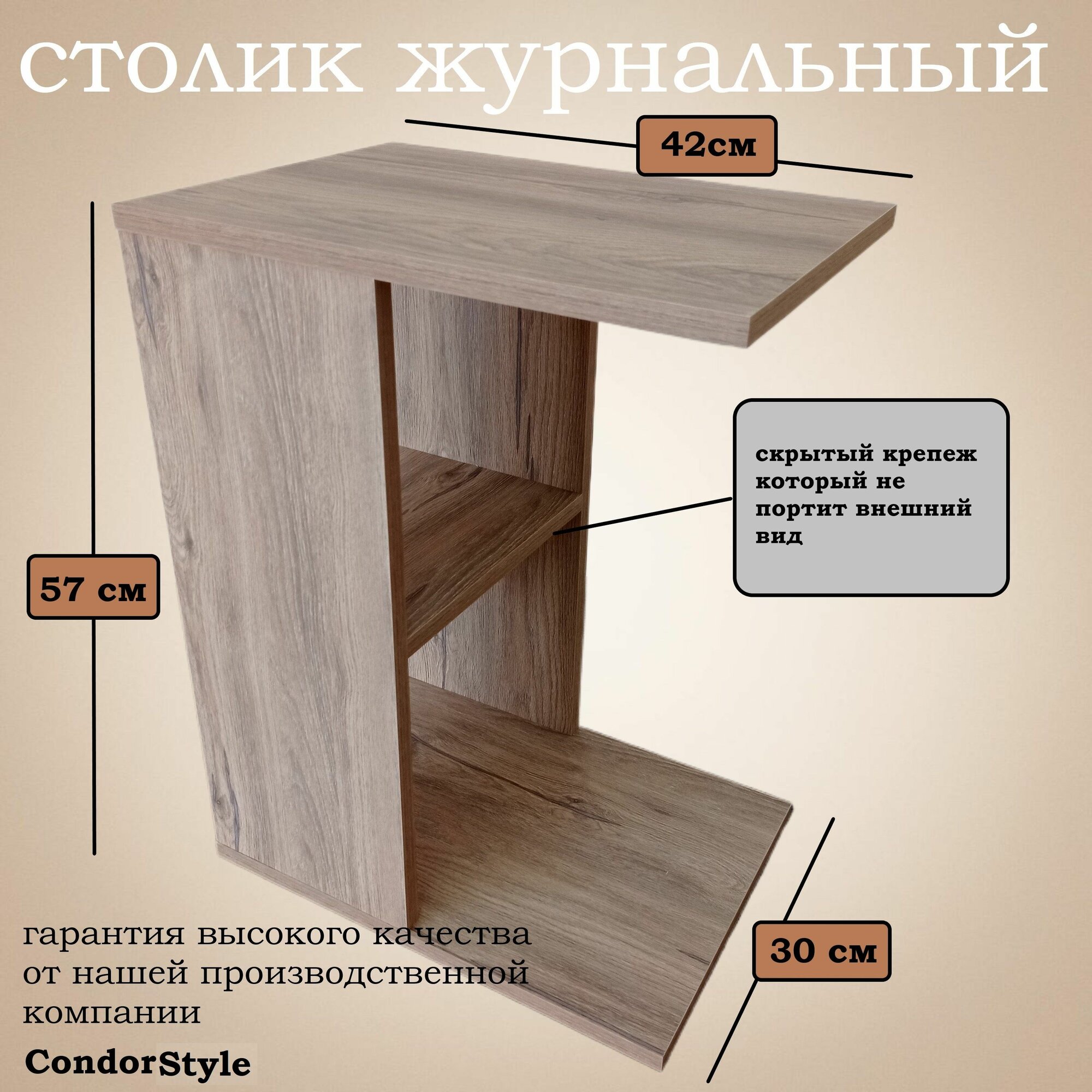 Столик журнальный приставной прикроватный "сойер" дуб песочный информация: