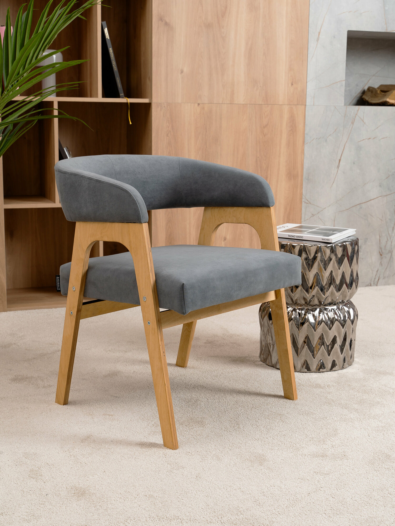 Стул кресло ZASIDELIS кайф мягкий для кухни дома и офиса темно серый/натуральный, из велюра, 56х62х72 см, до 130кг информация: