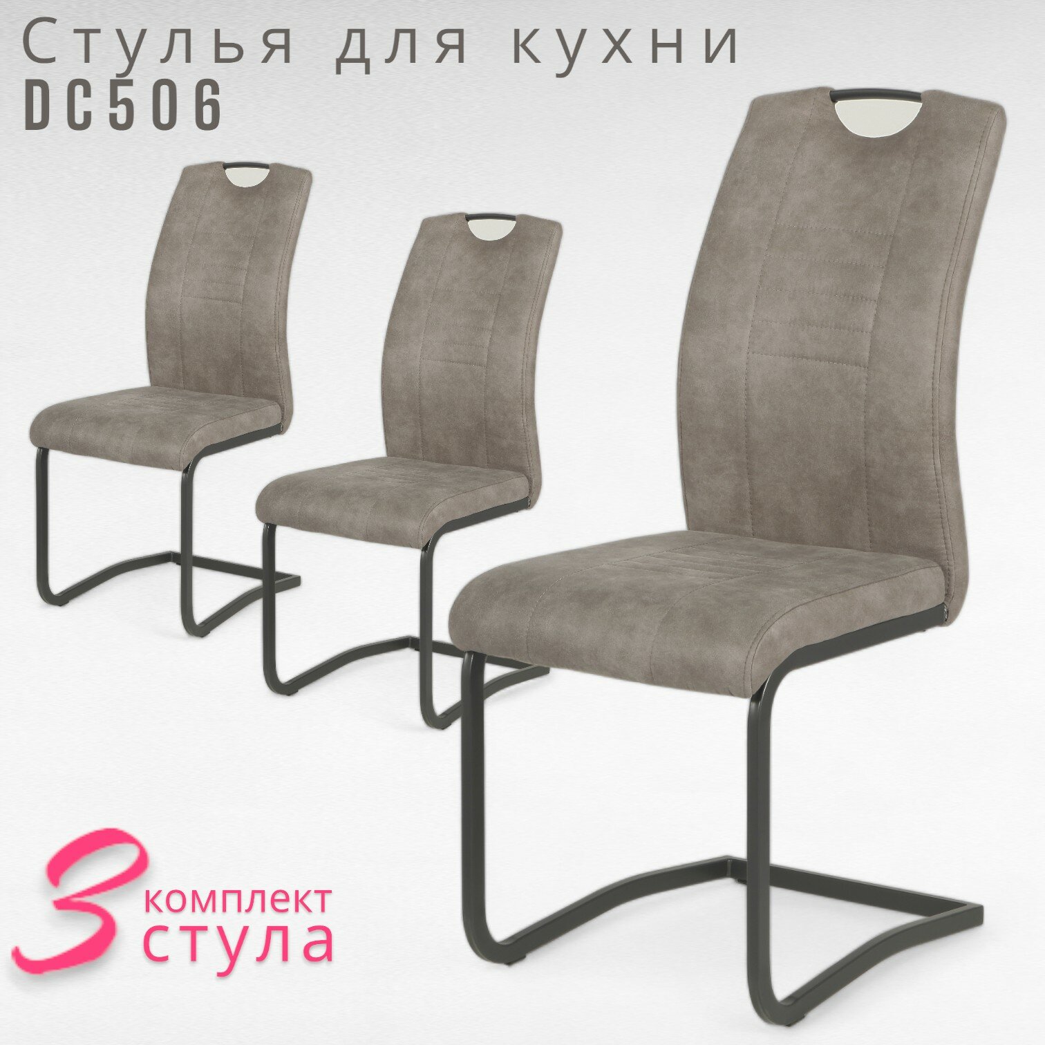 Стулья для кухни Терминал DC506 на полозьях, антрацит, нубук теплый серый grey, 3 шт информация: