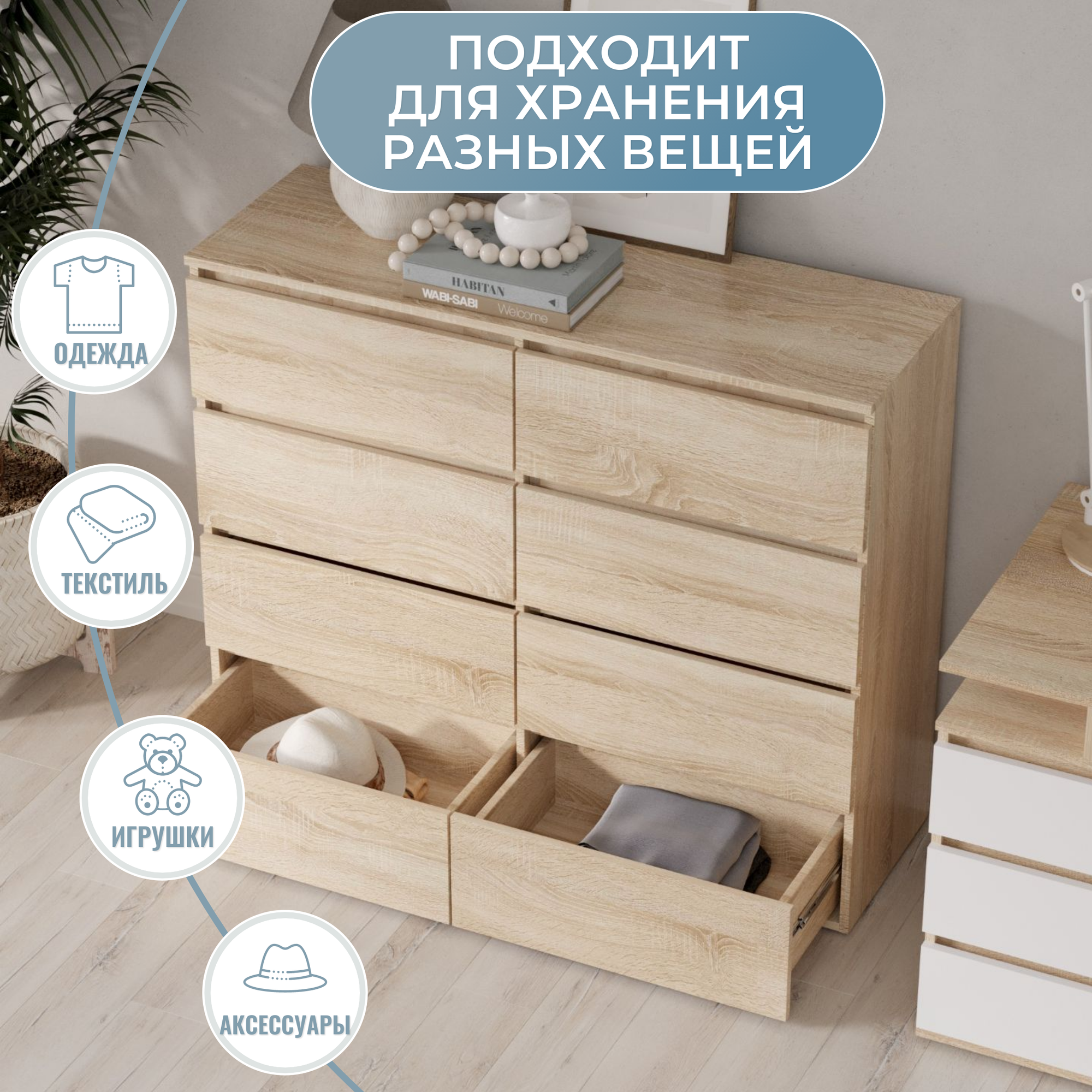 10 цен на Комод Лион для одежды с ящиками, 120х40x102 см, дуб сонома светлый