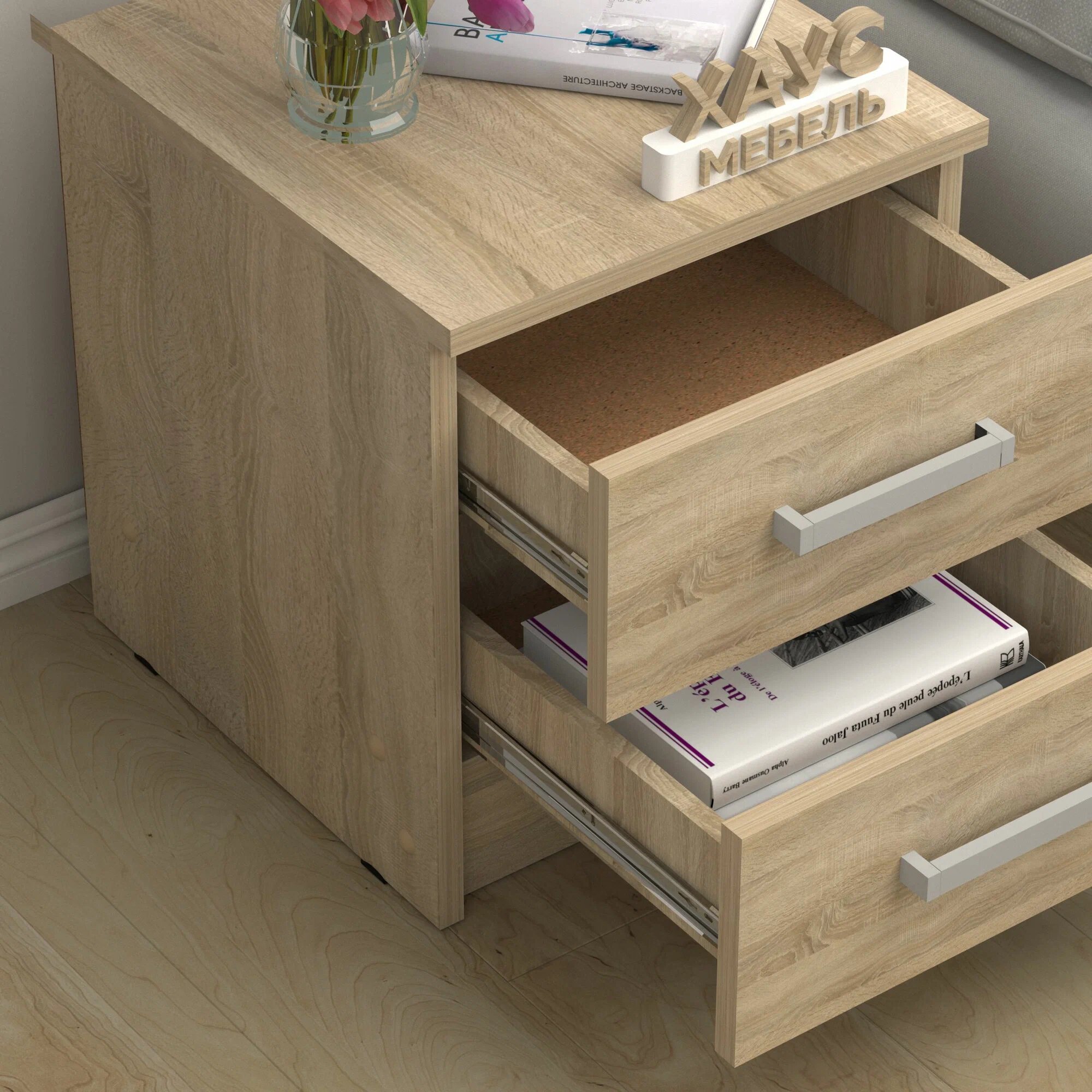 Тумба прикроватная №2, 35х38х42 см, с ящиками - сонома/белый