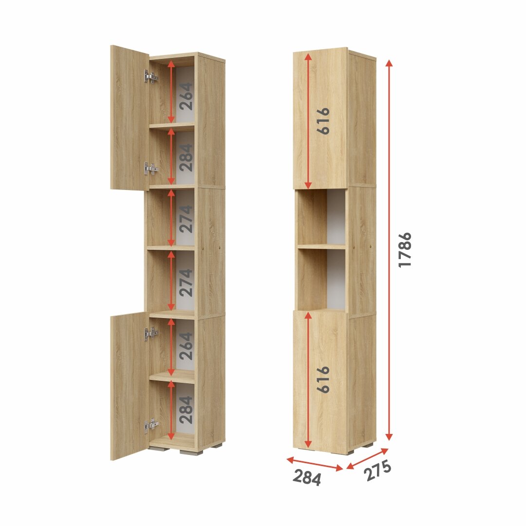 Шкаф-пенал ООО Мебель М "Сонома", ЛДСП, 25,3x28,4x177,6 см, 2 дверцы информация: