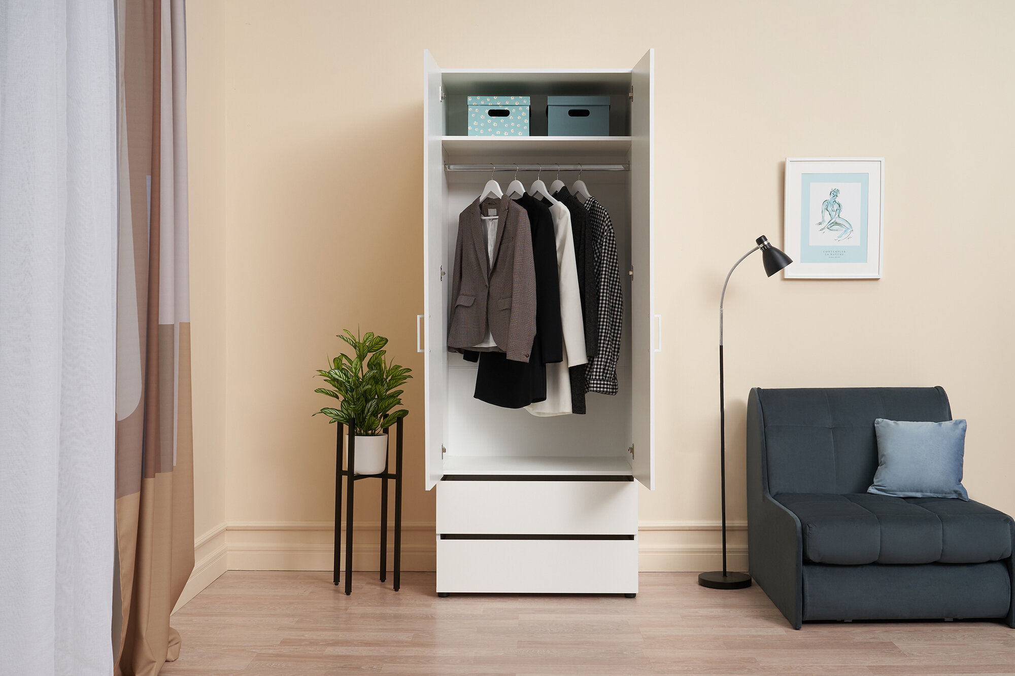 Шкаф для одежды распашной с ящиками и полками Нонтон Грейс, белый текстурный, 80х51.6х210 см 9 790 ₽