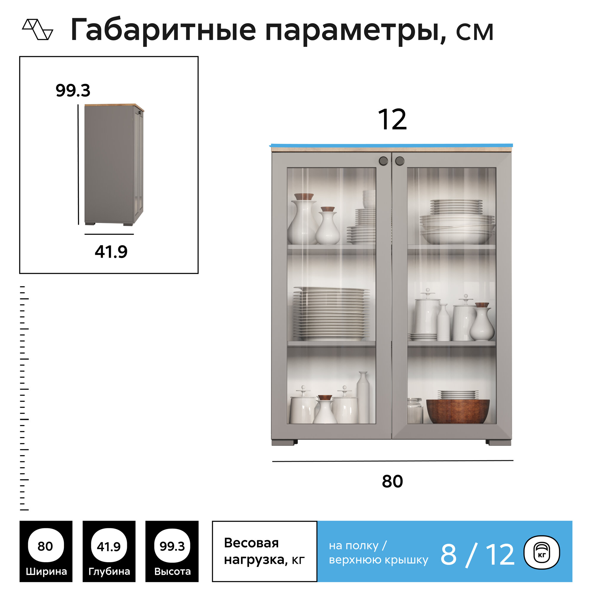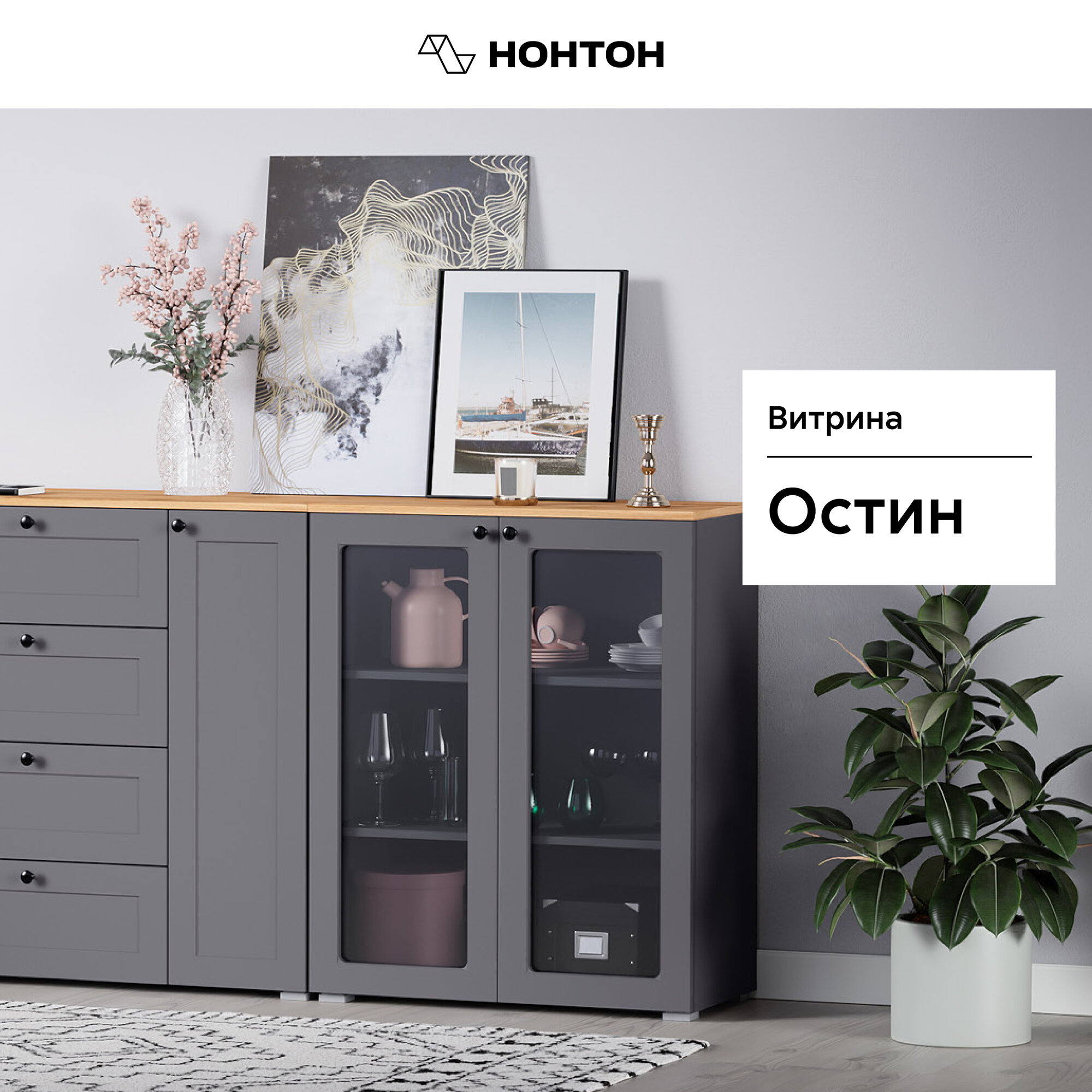 Отзывы на Первый Мебельный Распашной шкаф-витрина, комод Остин с полками, 80х42х99 см, Серый графит / Дуб Крафт золотой