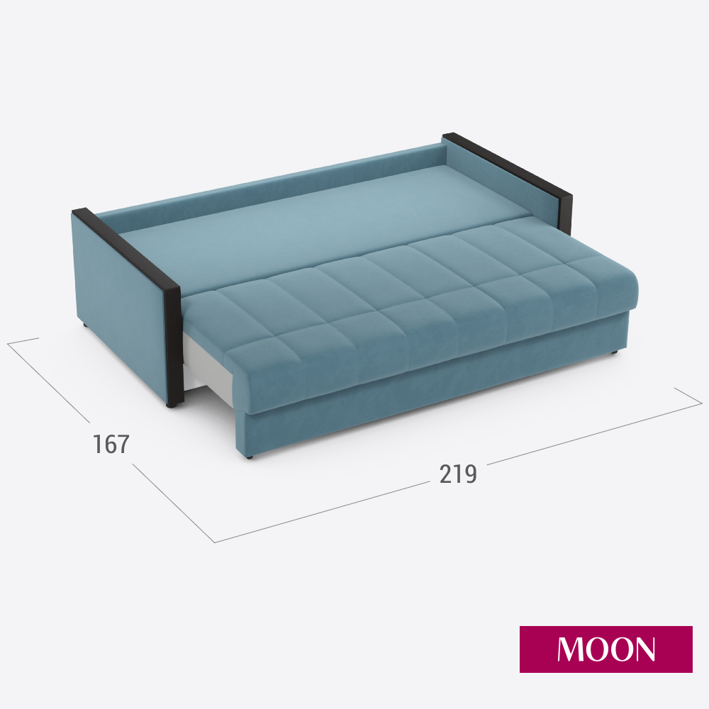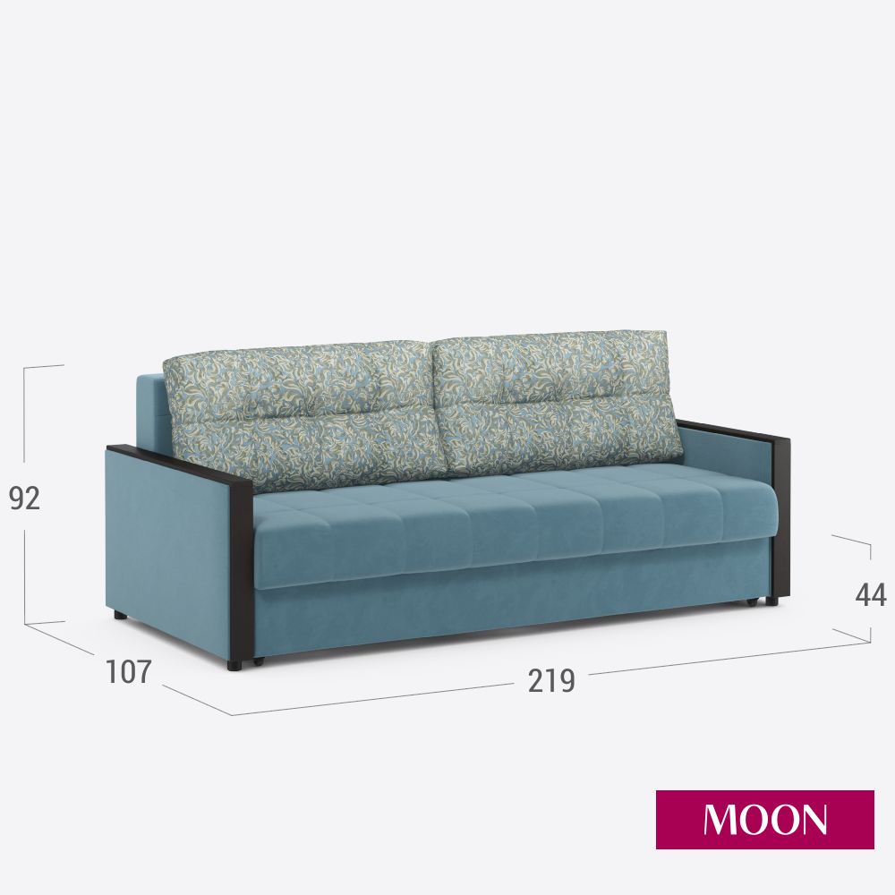 Диван-кровать прямой, раскладной еврокнижка MOON FAMILY 135, голубой , Независимый пружинный блок , 219х107х92 см информация: