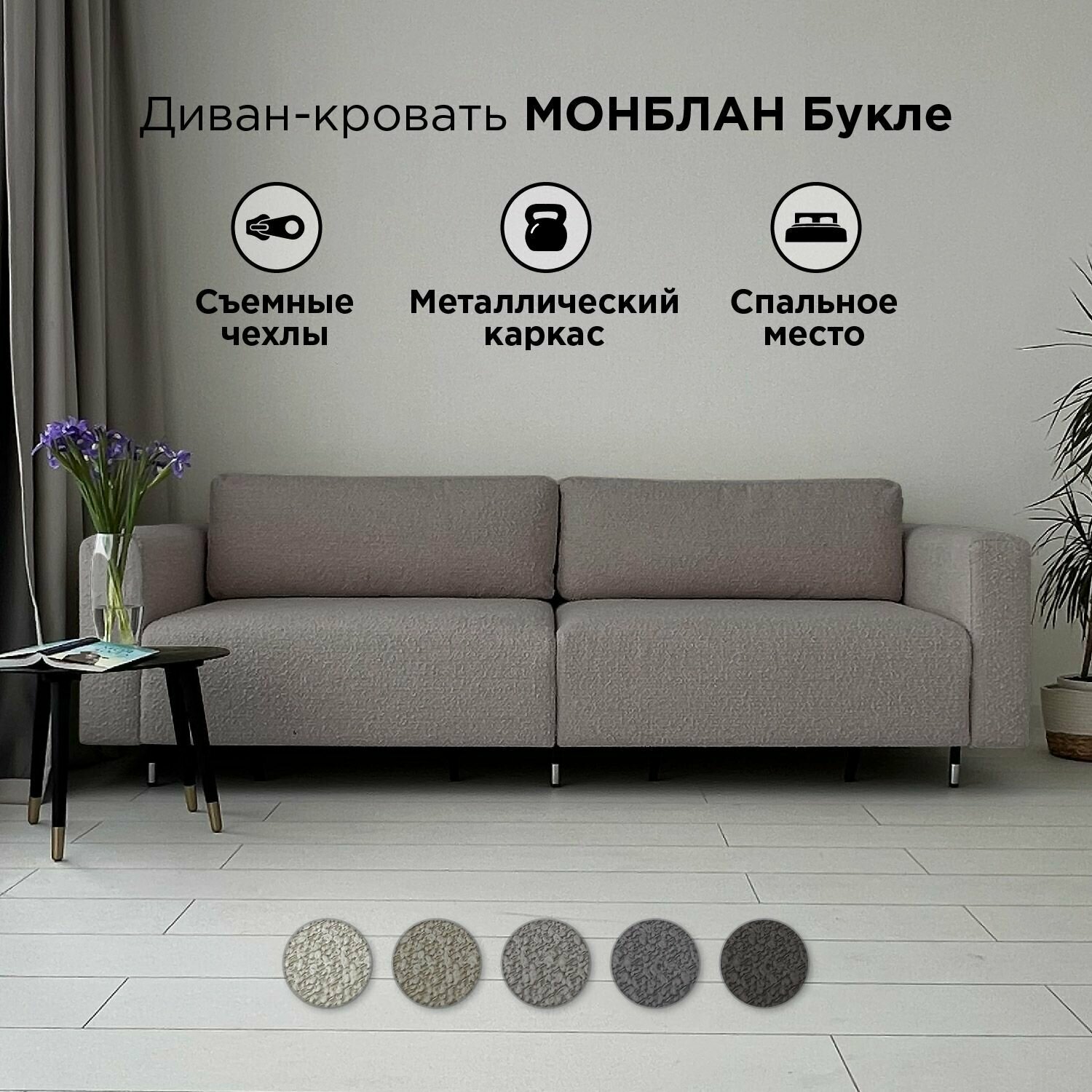 Диван-кровать Redsofa Монблан Букле латте. Раскладной прямой диван со съемными чехлами Редсофа, для дома и офиса (Мебельный гарнитур бытового назначения) информация: