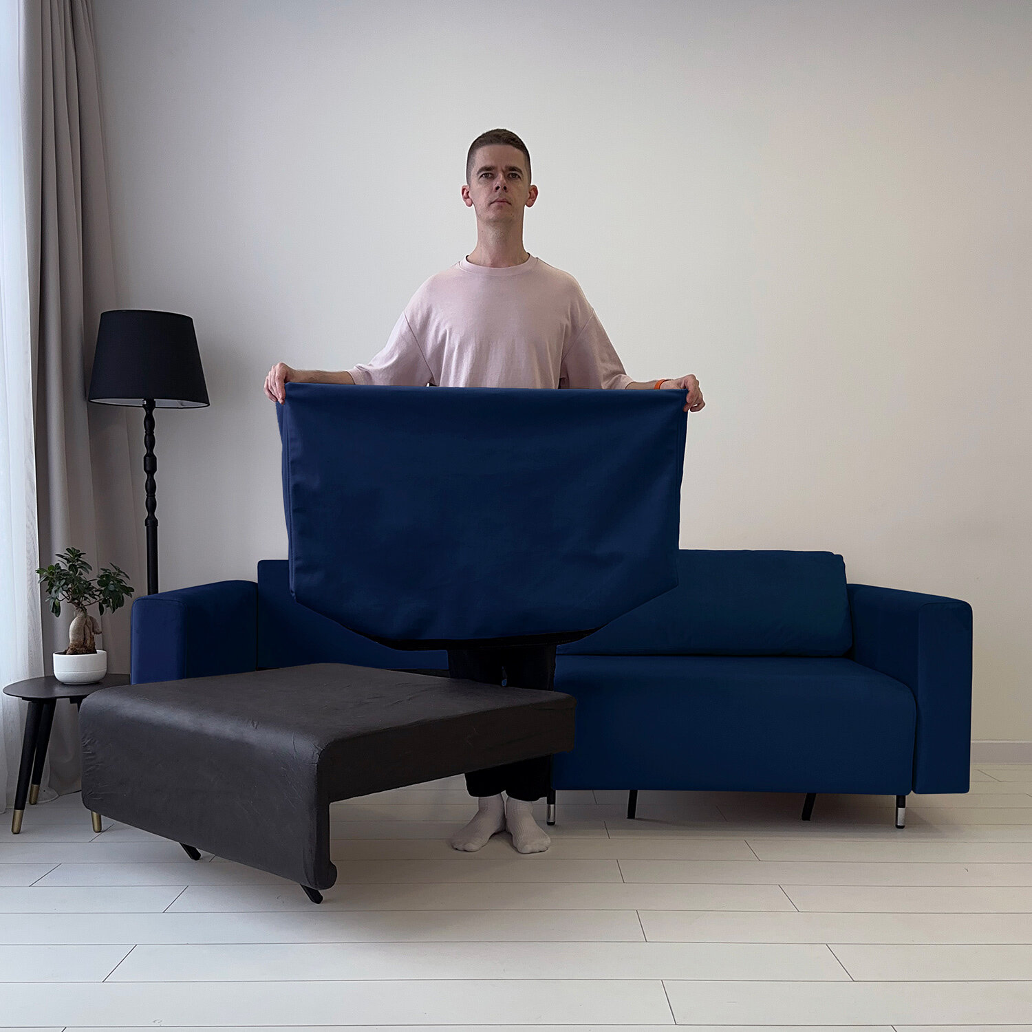 Отзывы на Диван-кровать Redsofa Монблан 230см синий антивандальный. Раскладной прямой диван со съемными чехлами Редсофа, для дома и офиса (Мебельный гарнитур бытового назначения)