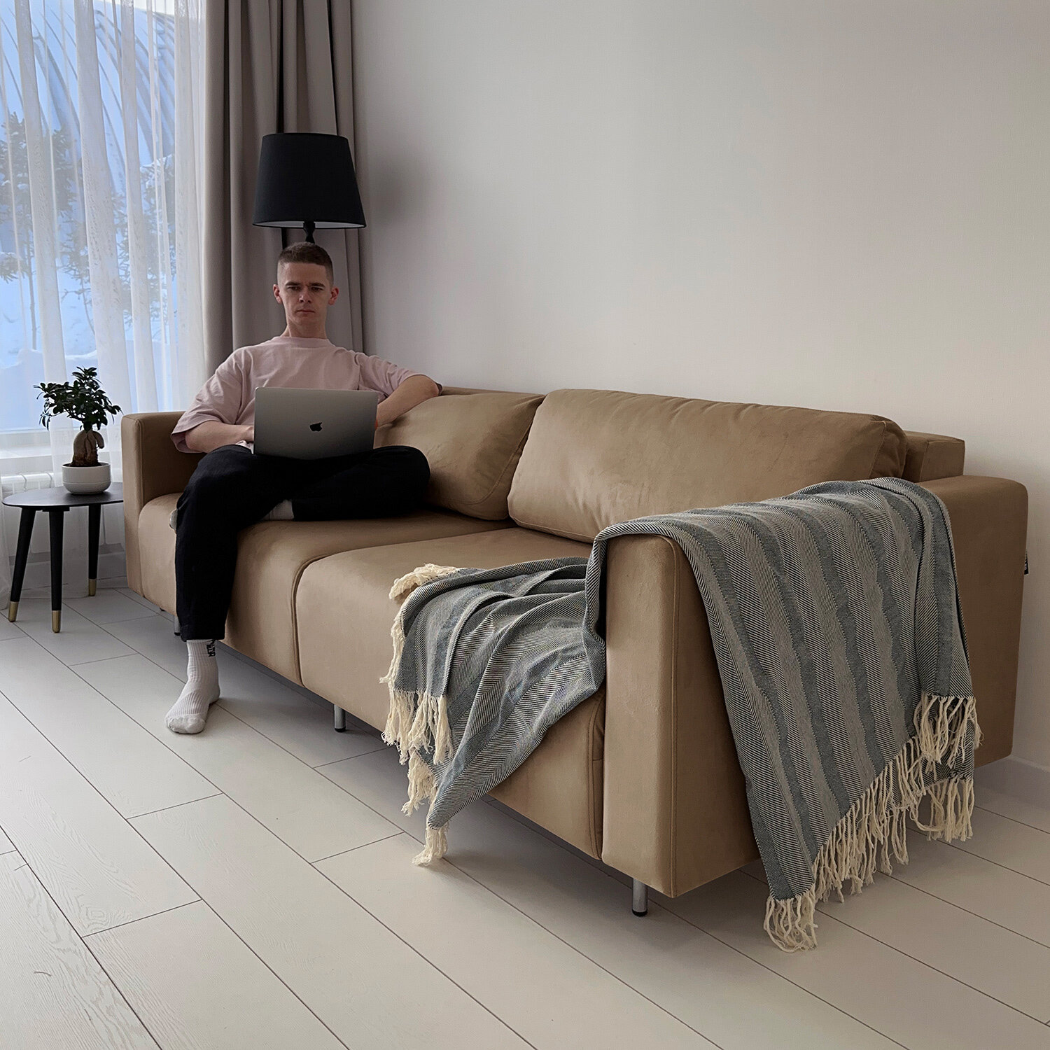 Диван-кровать Redsofa Монблан Букле латте. Раскладной прямой диван со съемными чехлами Редсофа, для дома и офиса (Мебельный гарнитур бытового назначения) 74 990 ₽