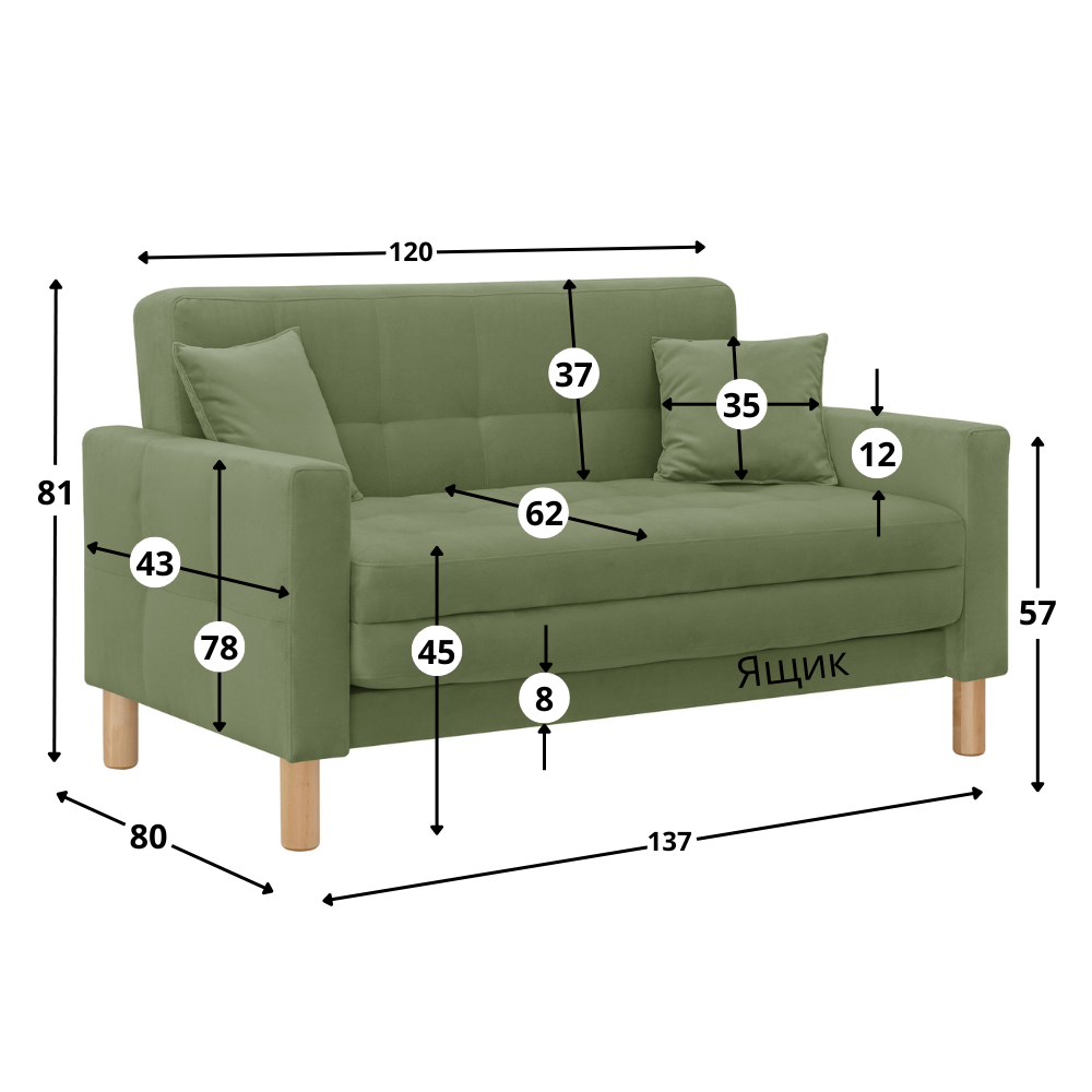 Отзывы на Диван-кровать Монро-макси, прямой, 137*80*81, спальное 120*194, велюр оливковый, Велутто 69