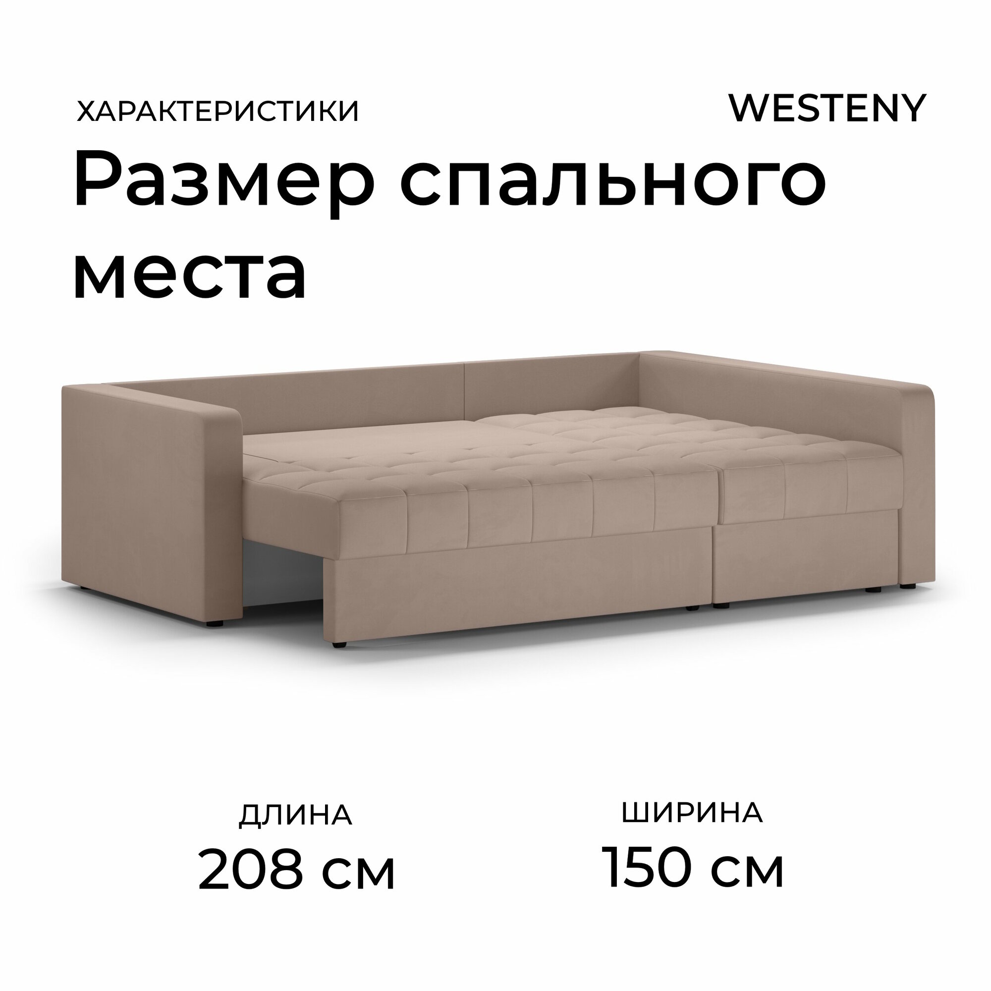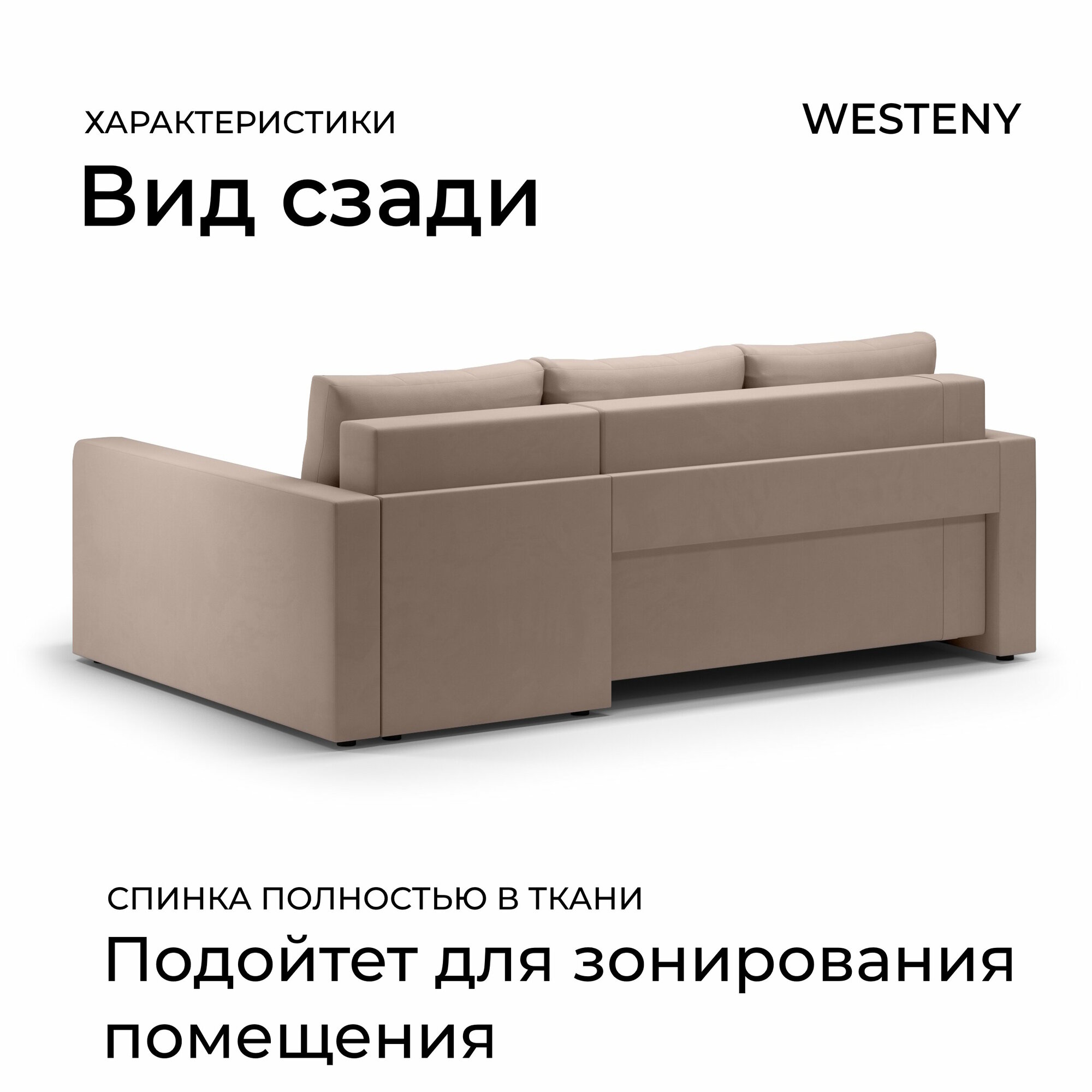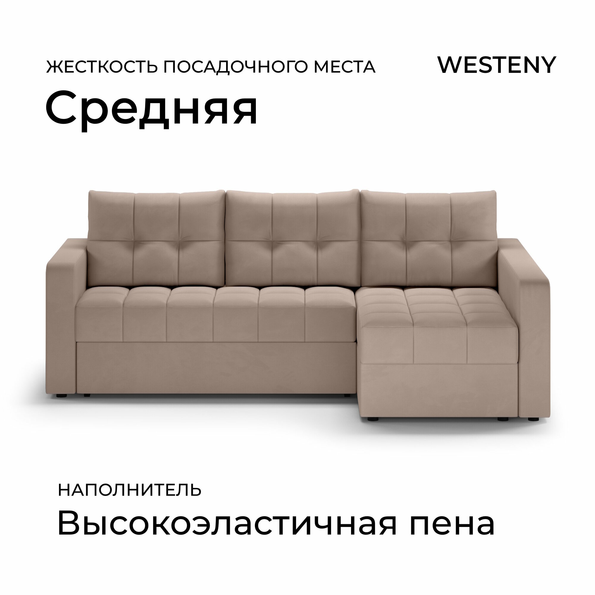 Диван угловой WESTENY "ART-102 левый" 236х155х81, 150х208, 3 места, бежевый велюр 51 146 ₽