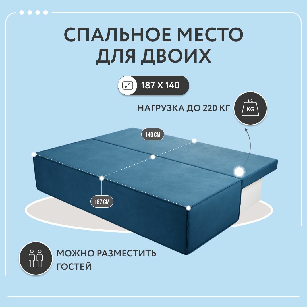 Диван-кровать раскладной прямой Корсо Лайт, еврокнижка, велюр, синий, 187х87х76 информация: