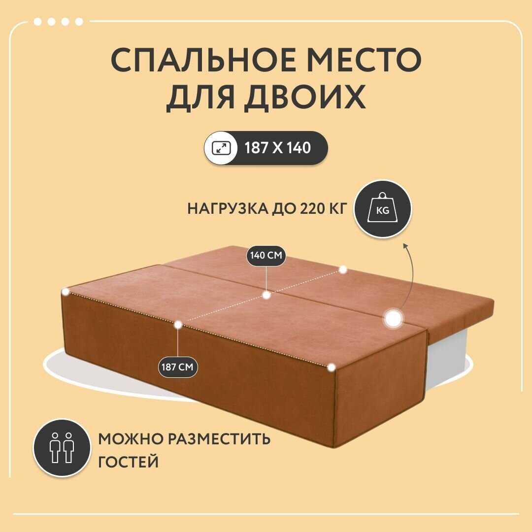 Диван-кровать раскладной прямой Корсо Лайт, еврокнижка, велюр, терракотовый, 187х87х76 информация: