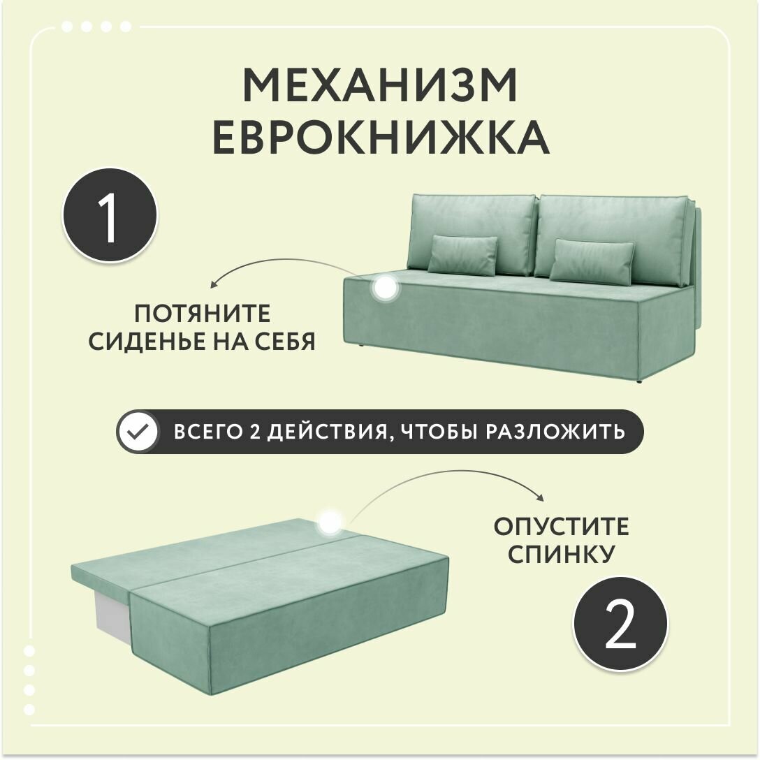 Диван-кровать раскладной прямой Корсо Лайт, еврокнижка, велюр, мятный, 187х87х76 информация: