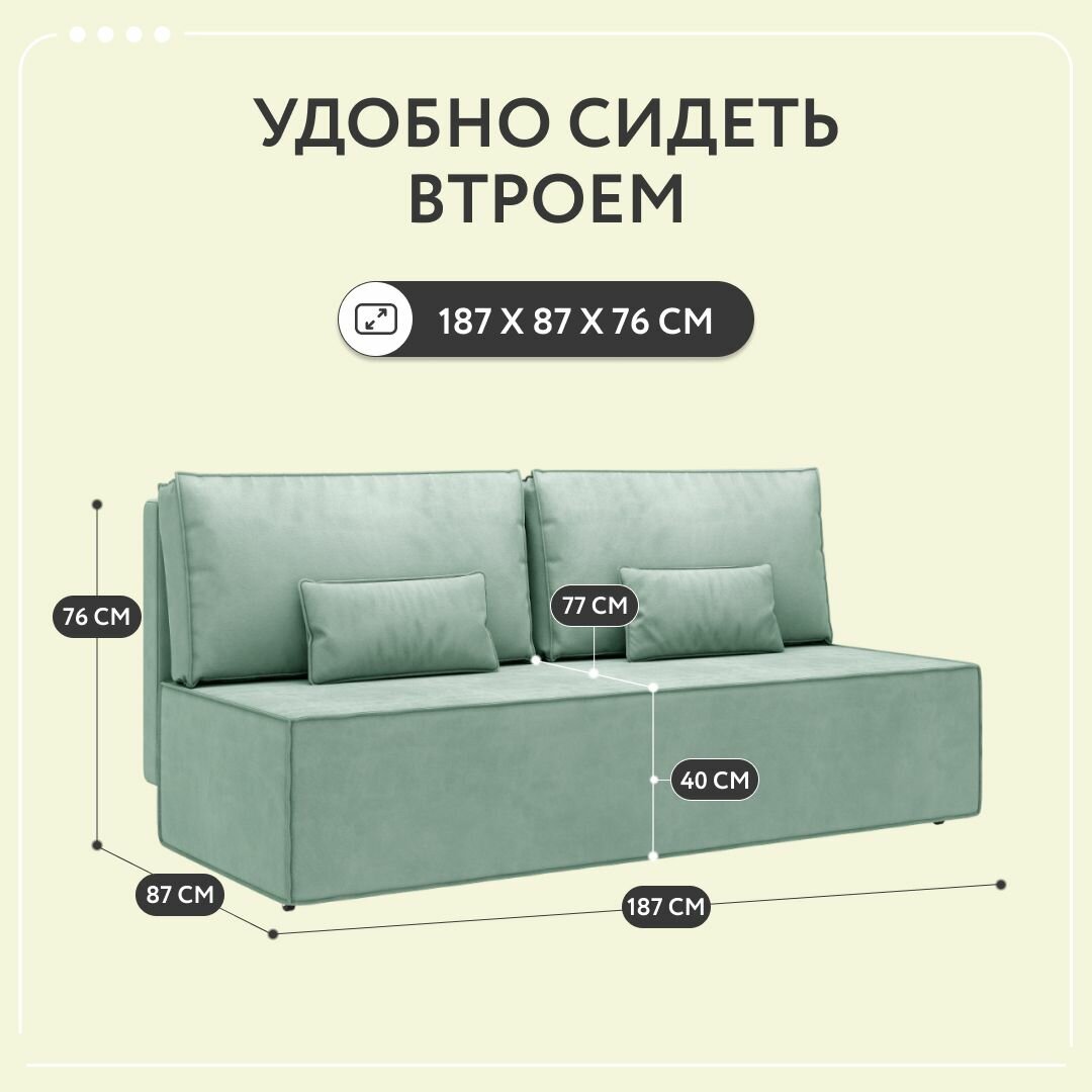 Отзывы на Диван-кровать раскладной прямой Корсо Лайт, еврокнижка, велюр, мятный, 187х87х76