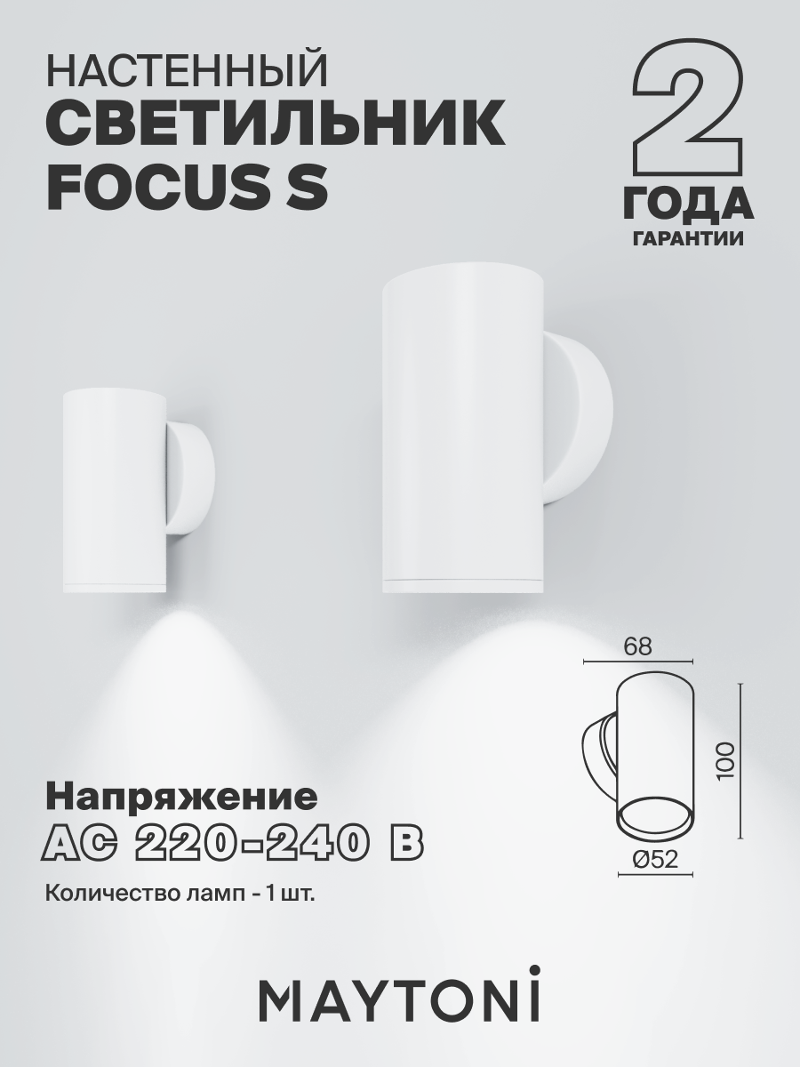 Отзывы на Настенный светильник бра белый Maytoni Technical FOCUS S C068WL-01W