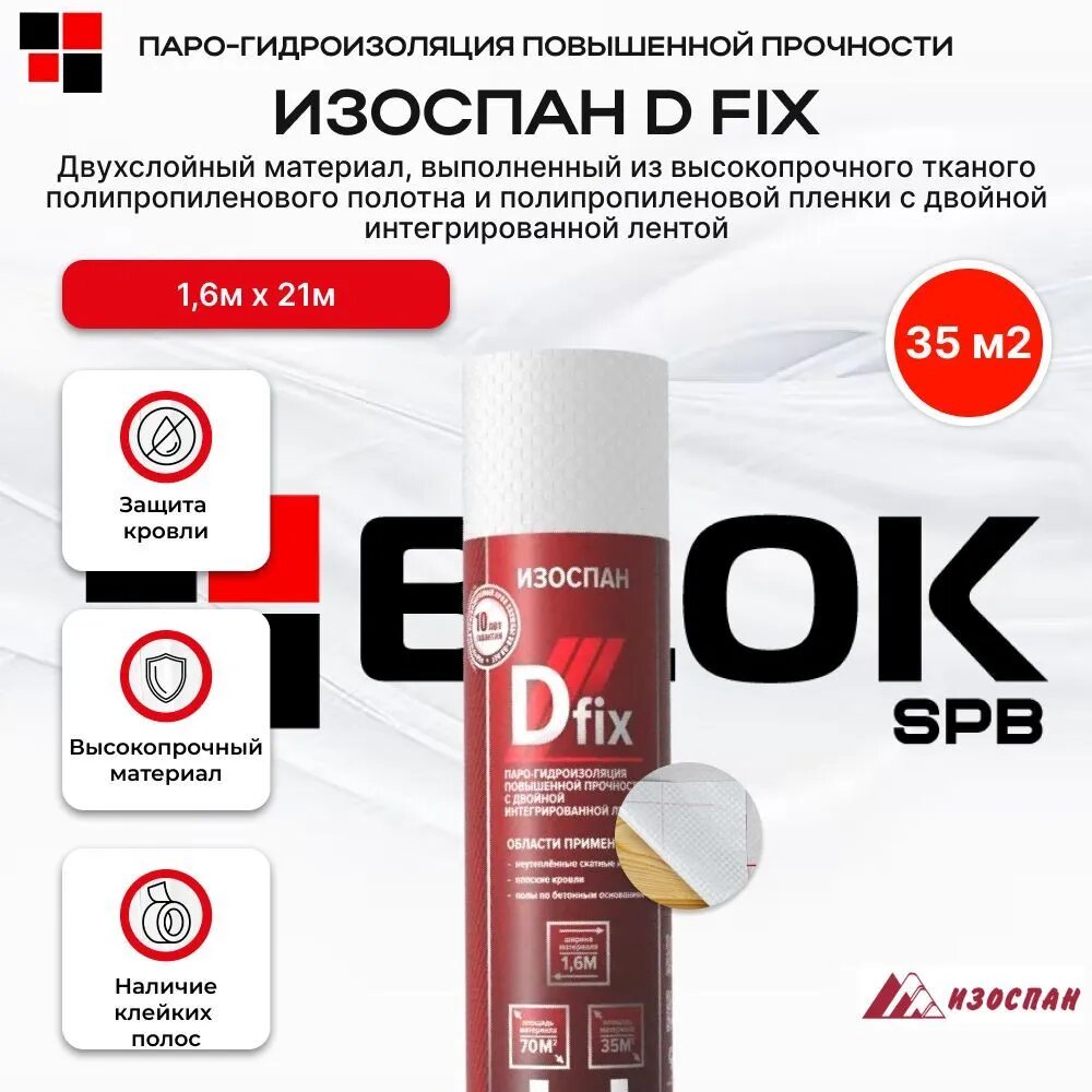 10 цен на Изоспан D fix 35 м2 парогидроизоляция повышенной прочности с двойной интегрированной лентой