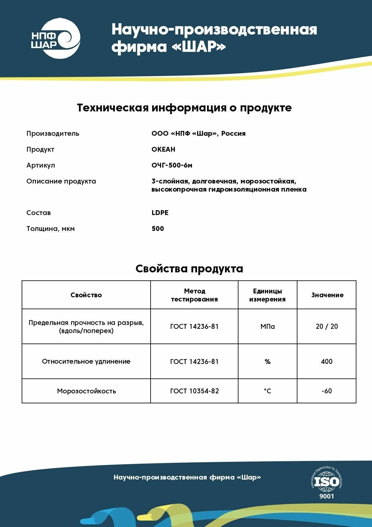 Пленка океан для гидроизоляции, для бассейна, пруда и водоема 6x17 м, 500 мкм, полиэтиленовая