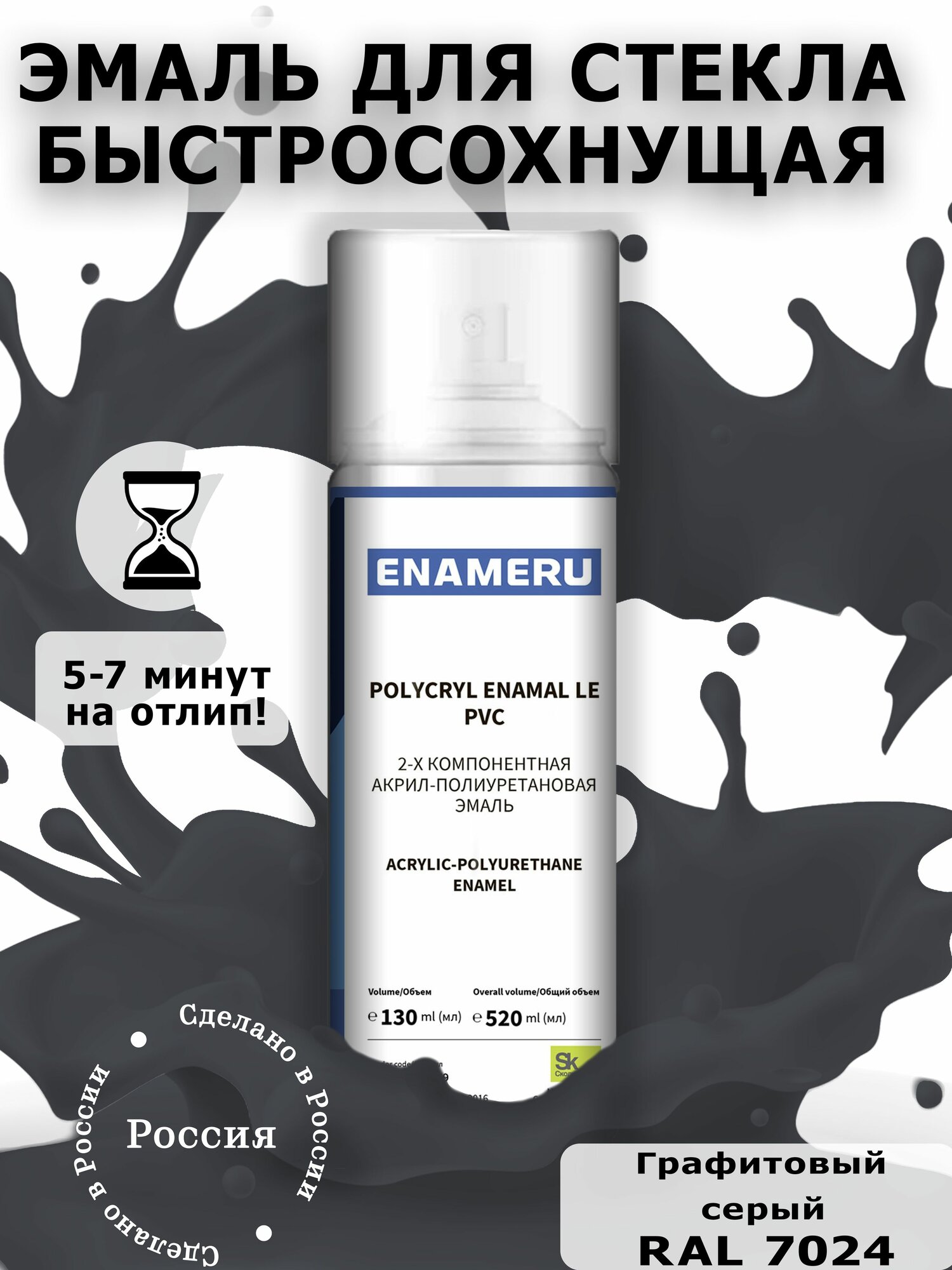 Аэрозольная краска для Стекла Энамеру, Быстросохнущая, Акрил-полиуретановая, Полуматовая, 0.52 л, Графитовый серый RAL 7024 информация: